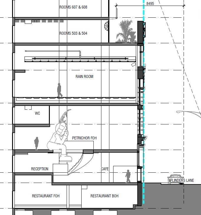 This lovely 1911 #FlindersLane #warehouse, was possibly designed by #WilliamPitt, and for ages Maria George was here, the best place to get your sequins, then it was turned into stylish offices not so long ago. It’s now set to be gutted and transformed into a #JackalopeHotel, with a lobby featuring a giant Kaws, restaurants, a #rainroom (with its own lift), extra glass balcony, and way up on top above the ‘discretionary’ #40mHeightLimit, a bar wrapped in stainless steel mesh supposed to look like a cloud. The theme for the whole thing is #MelbourneWeather, oh boy 🙄 Took me a while to realise but it’s a symptom I suppose of the ‘experience economy’ (is that a thing ?) and probably a bit exclusive/expensive. Very annoyed that it’s only this block that’s discretionary 40m rather than mandatory, like the ones to the north, but at least it’s more like sculpture than building.