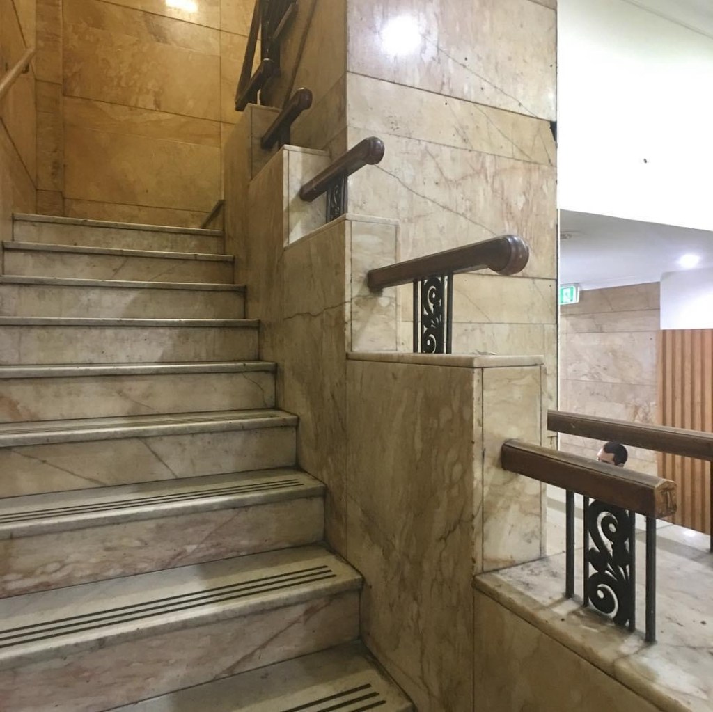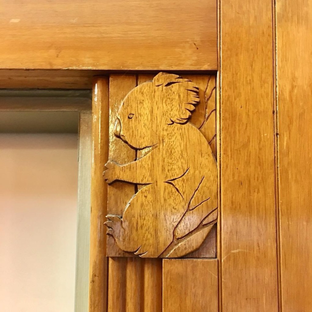 If you poke around, the interiors of the #ANAbuilding in Elizabeth Street near Flinders Lane has all these Australian animals here and there ! The #AustralianNativesAssociation was a #mutualsociety from the 19thC, providing insurance, sickness benefits etc for members. Being National by nature, they used ‘100% Australian timbers and marbles’ as well as depictions of native wildlife when they built themselves a new HQ, designed by #MarshandMichaelson, with offices to rent as well. The once great lobby has been a bit wrecked by plonking a cafe in it, a timber floor covering the marble one (!), but the stair is great ! With kookaburras and a thistle (not very native !). Upstairs there’s a pair of carved koalas by each lift 😊 . The board room (no photos) and rounded plywood reception desk on the 7th floor are still there too. (ANA were a bit political, and most famously known for sticking to the White Australia policy after everyone else gave up on it in the 70s).