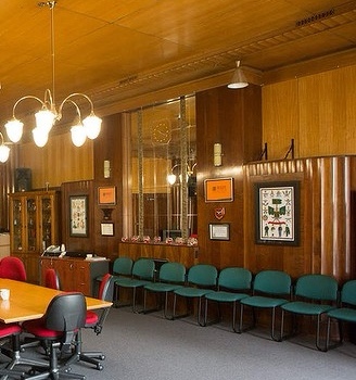 Their board room beyond is still intact too, as in pic 5 and 6 is from the Age. There’s cute Australian images elsewhere too, Koalas by the lift doors and Kookaburras in the stair balustrade, and more on the facade. The lobby is partly intact too, but cluttered with a cafe and a timber floor after my 2011 pics. #melbourne.upstairs.