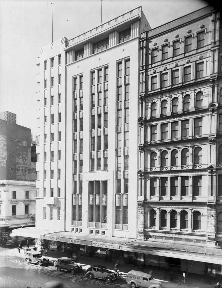 A collaboration with @melbourne.upstairs; which is to say pics 1-4 are theirs. First is a great pic of the stylish reception desk of the Consulate of Nepal, on the 7th floor of 28 Elizabeth St, which originally served the Australian Natives Association. They commissioned the building from Marsh & Michaelson, and it opened in 1937.