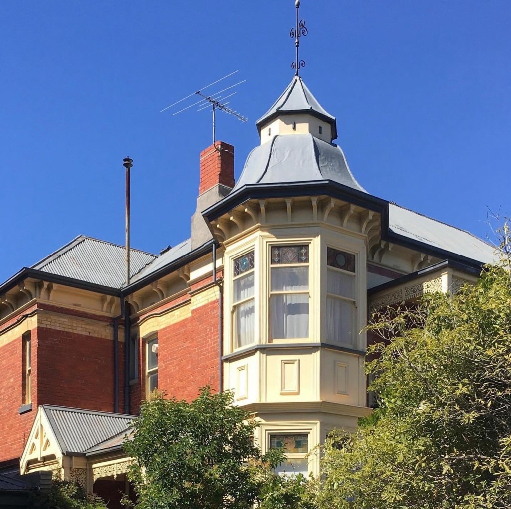 Original 20 January 2021: Spotted in #AlmaRoad St Kilda – a delightful house, with a corner turret and side entrance. Could be c1890 or c1900. Doesn’t appear to have any info in the port phillip heritage review, but is graded as ‘significant’.