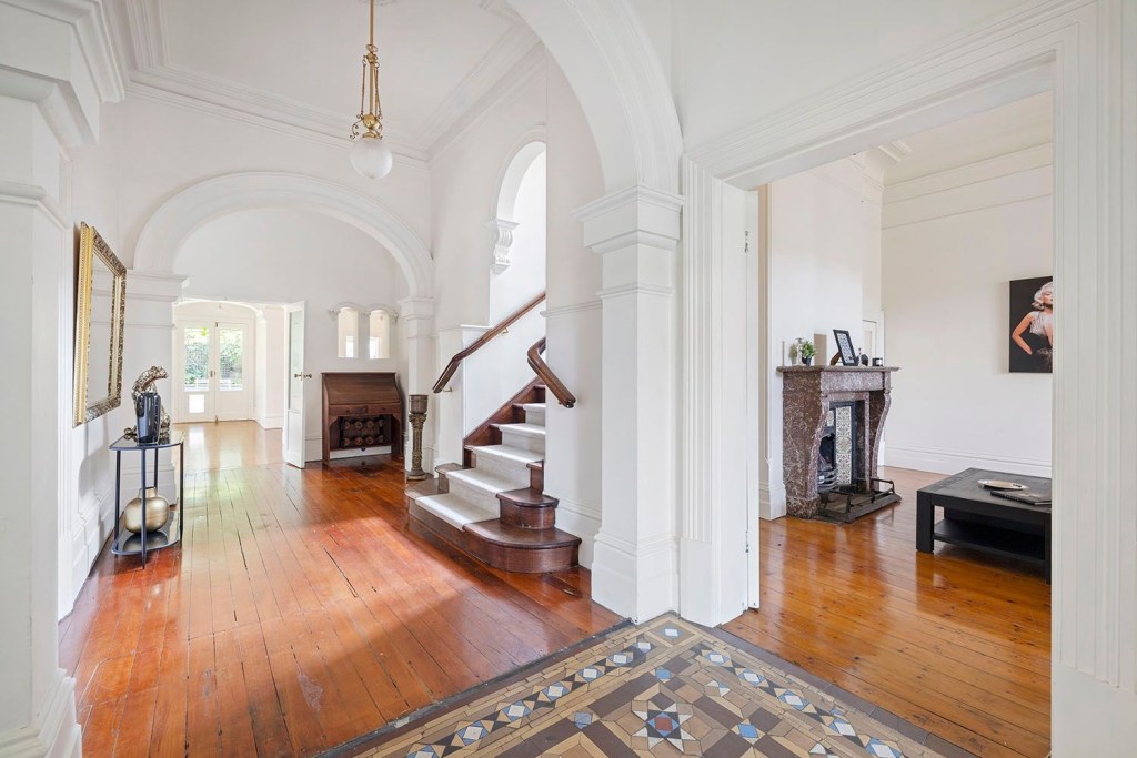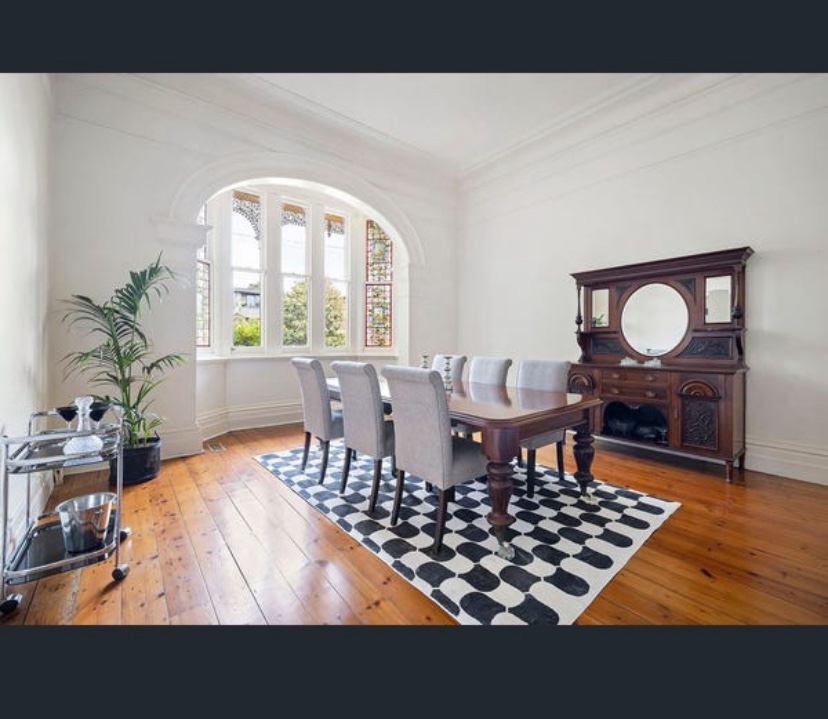 Update 2024: for sale now, real estate listing shows inside is grand but plain, looking more like 1900, with those arched bay windows, but says its 1890, in which case it’s rather advanced. Hmmm so researching on Trove it seems it was called Eastcliff, and the home of Isaac Barnet later in his life, who did well in the jewellery business, and had been on various charity boards, and – surprise ! – was father of Nahum Barnet, who was a successful and sometimes forward thinking architect by the 1880s – so presumably the house was designed by him. Earliest mention I could find was 1896, so could be 1890 after all. Further info from a port phillip heritage planner – a house under construction here for Isaac Barnet was noted in 1888-9, and Nahum Barnet called for tenders for a two storey house in St Kilda in 1888, so yes most likely he designed it. Quite advanced, with elements that later defined Edwardian, like using plain red brick, an entrance on the side, a corner turret, with pointy roof, and the two arched bay windows inside.