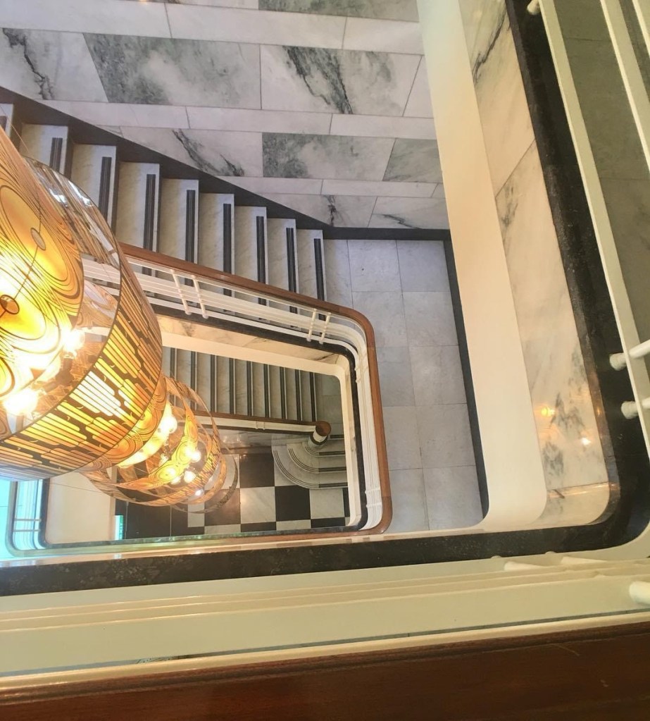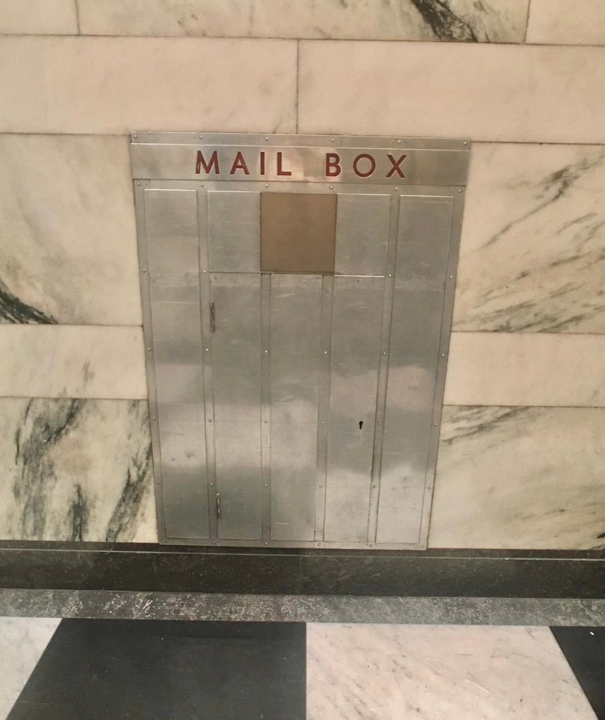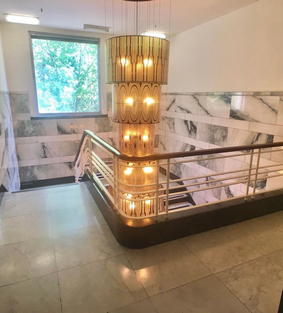 Fabbo office entry to the #ESandARoyalBankChambers, cnr Collins & Elizabeth, #StephensonAndTurner, 1941. Luxe Modern/ArtDeco (#artmoderne?), all #marble and #chromiumsteel. Looked better in 2011 when I took the first photo, didnt need that silly clashing gold light thing, installed in 2017 I think, had to turn the saturation down to get rid of the brown tinge, and it seems they replaced the clock ! Why ? Still looks marvellous though.