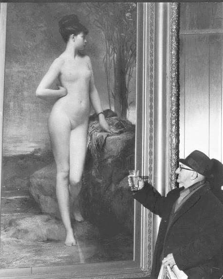 Chloe, once the most famous nude in #Melbourne, hanging at #YoungandJacksons since 1909. Painted in Paris 1875 by Jules Lefabvre, she’s supposed to be a water nymph of that name (but has very late 19thC hair imho). Exhibited here at the #InternationalExhibition in 1880, then bought by the #RoyalMelborneHospital surgeon Dr Fitzgerald, who loaned her to the #NationalGalleryVictoria in 1883, where it caused quite a stir, so he took her back. When he died in 1908, she was bought by Mr Young, and she’s hung in the pub ever since. For most of the20thC she was in the male- only #Chloesbar, since the 90s she’s been upstairs in the bistro. Love the scrolled #nameplate. 3rd is her causing affront, and last is her being enjoyed c1972.