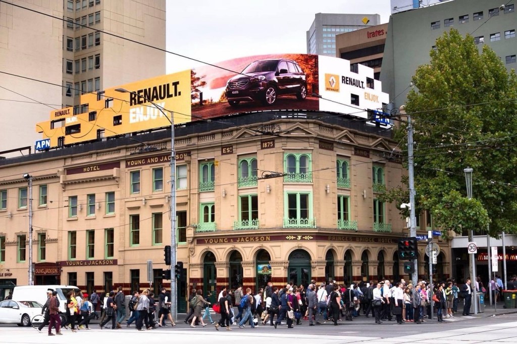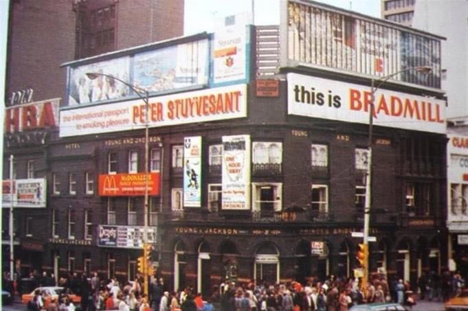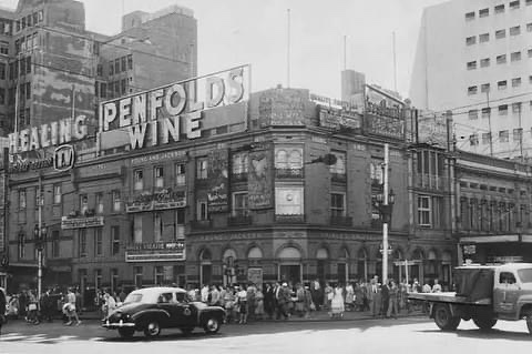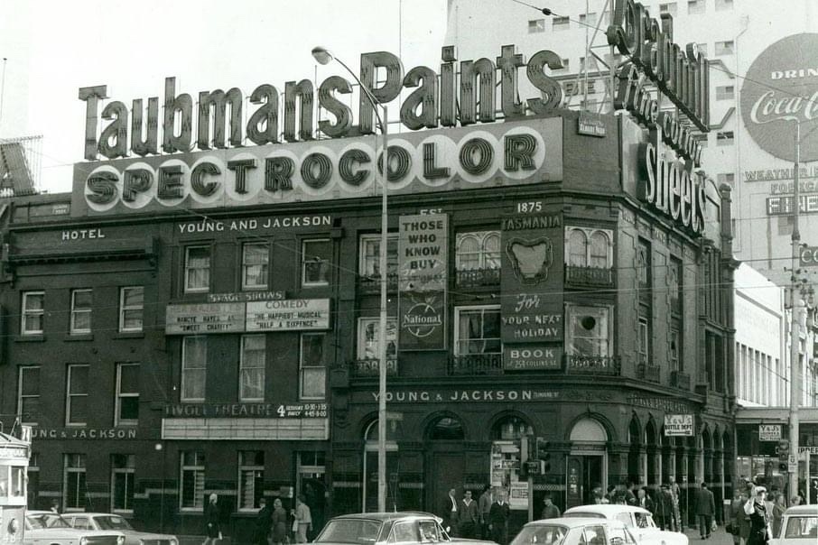 The expanding and shrinking signage on Young & Jackson’s. Y&Js is a truly iconic place in Melbourne, and in fact one of the oldest, right on possibly the most important intersection of the city. The building dates from 1853, its been a pub since 1861, Y&J’s since 1875, and its had advertising signage from at least the 1920s; they grew larger and more numerous until it was virtually covered billboards and neon signs between the 1960s-1980s, gradually reduced down to the current LED sign, built 10 years ago. Photos go back in time – 2017, c2000, c1980, 1967, 1950s, c1940. I guess it’s better without any signs, the current one is so bright !, though the old neon signs had a certain charm.