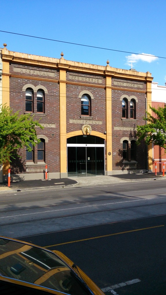 This golden horse head graces the front entrance of what was built in 1886 at 40 Brunswick Street Fitzroy as Melb’s first animal hospital, which soon became a Veterinary College as well. It operated here until 1928, then became various things, and classified by the @nationaltrustvic in the 80s. Then from memory it was sold late 90s and nearly became just a facade until the trusts nomination to the heritage register was successful in 2001. Im still mad though that they tried to be nice to the annoyed owner, and only listed half, so the rest was replaced by townhouses. It was all like a grand stables inside, with a balcony and clerestory roof. Some is still there, refurbed as offices, and lately it’s been done over again as the ACU Media Hub, infilling the space a bit more. Mystery about the horse head though, the Trusts 1986 listing notes it there, but it’s clearly not there in their photo, pic 3, so many a modern version ? Pics 4, 6 from leasing in 2015, pic 5 from @harmer_architecture.