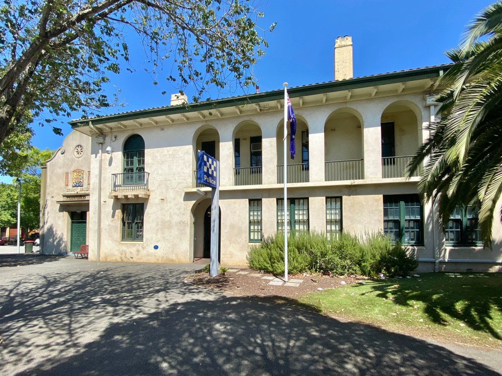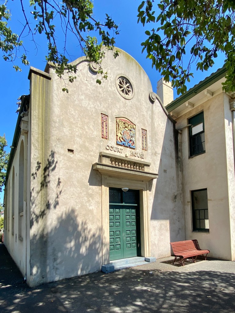 The South Melbourne Court House and Police Station, opposite the grand Victorian South Melb Town Hall, was built in 1928 in a Spanish / Mediterranean style normally found in flats or houses, not public buildings, but it’s quite charming with that arcaded verandah, and curly pediment. Designed by the Public Works Department under E Evan Smith, which normally produced simple classical designs in the 1920s. The Heritage Victoria listing says the interior of the court house is largely intact, but i didnt go in …. in fact I’m surprised they didn’t run out and tell me not to take photos !