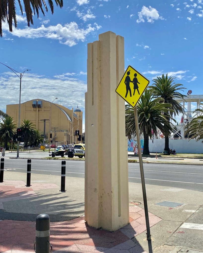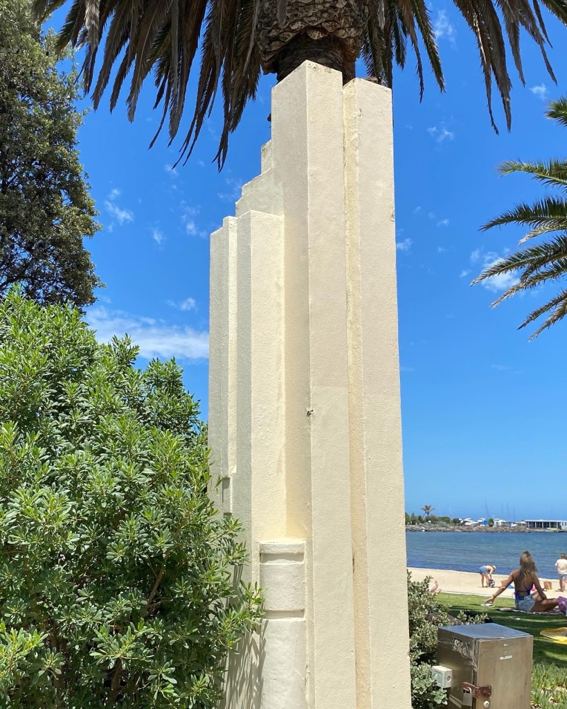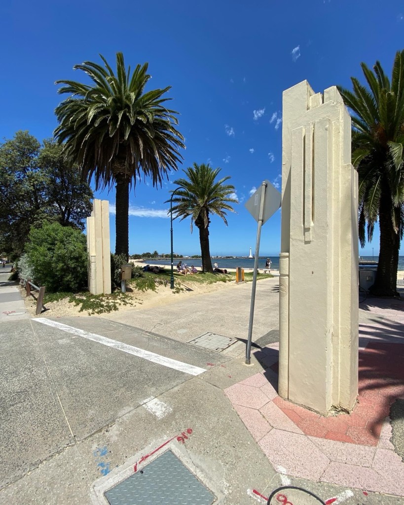 Not terrifically exciting, but these pillars at St Kilda beach framing the entry to Brookes Jetty, are thought to have been designed by Walter Burley Griffin, part of a larger scheme for the foreshore, never implemented, but no drawings have ever been found. Possibly c1925, or maybe later after the bathing pavilions were built in 1928 ?