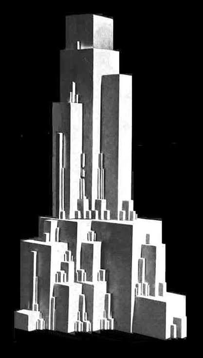 The pillars are very NY skyscrapery, but also reminds me of the Arkhitektons by Russian Constructivist Kasimir Malevich of the mid 1920s. In fact can’t think of anything else Griffin designed that’s quite like them.