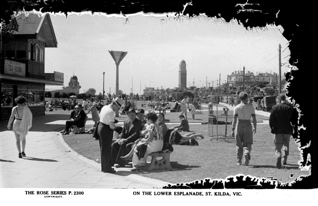 After consulting architectural historian Simon Reeves and checking sources, it seems that these pylons on St Kilda Beach, and the spiky lamps once also there were not designed by Walter Burley Griffin. There’s no evidence linking him to them, but there are a couple of mentions in newspapers of ‘futuristic pylons’ and ‘tinted cone tops’ in descriptions of decorations on the foreshore for Victoria’s Centenary in 1934. No designers noted. Also the lamp tops appear to be on bases that match a standard type put up along the foreshore from 1930, which appear in many photos, while the cones only appear twice. So I guess myth busted ! Two less Griffins, but the pylons would be the only bit of decoration left over from the celebrations that I know of, along with the more permanent Macrob High, Macrob Fountain, and the Macrob Bridge.