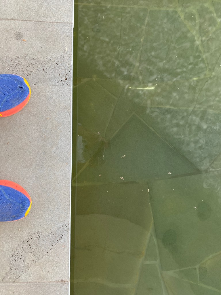 This years M Pavilion, by Japanese architect Tadao Ando. I like it a lot. A few simple ideas, but quite delightful, intriguing, and achieves a sense of quiet emptiness (just saw that Ando described it as ‘an architecture of emptiness’, so he achieved exactly that!). Unlike other M pavilions, it’s quite enclosed from outside, except for unfeasibly long slots in the two long walls. Then inside there a veeery wide circular roof, and half the floor area is actually water. Would have been contemplative except for all the people and chatter. Subtle water jets create ripples reflected on the ceiling.