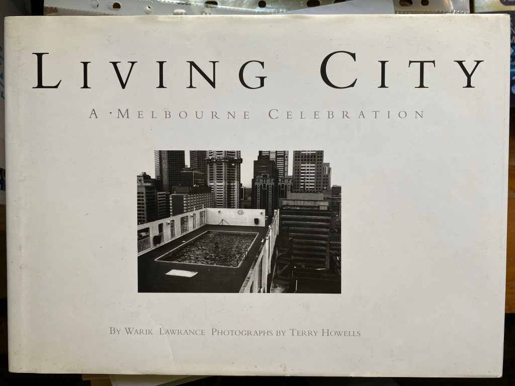 A friend loaned me this book from 1995 that’s just photos and interviews of people living in the CBD, back when it was quite unusual. There were only about 1000, mostly in the two 60s high rise, and in cheap accommodation in ex hotels, but also the pioneers who were more or less illegally occupying warehouse spaces. Here’s a selection – Simon O’Brien (later and still one of the 6 degrees architects), Bank Place; Alexander Robertson, Real Estate Agent, Treasury Gate Spring Street; Maria Sillitto, (her eponymous store in Collins St in the 80s was a fashion Mecca), Little Lonsdale; Eva, Guildford Lane; Lisa, Lonsdale St; Harvey, Bourke St (wish I could work out where); Frank, caretaker at the Beehive in Elizabeth St; Lola & George at the King St tearoom, cnr LaTrobe (they left 2 years ago when the place threatened to collapse); and John at the Gill, the Salvos accommodation once in A’Beckett St. Many of them talk about how it would be great if more people lived in the CBD, bringing it to life – there’s now 46,000, average age 26, but I think it’s all the bars and cafes that really make the city busy now. The warehouses are often now proper apartments and/or surrounded by towers. The book is by Warik Lawrence, photos by Terry Howells.