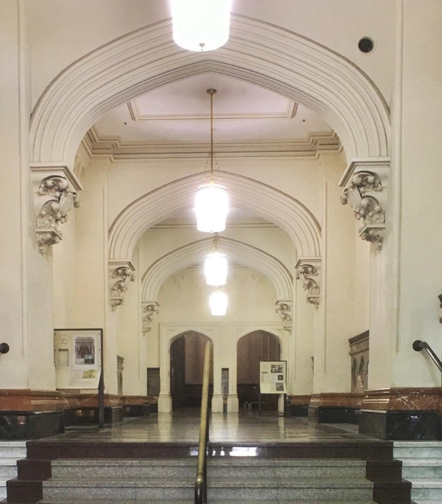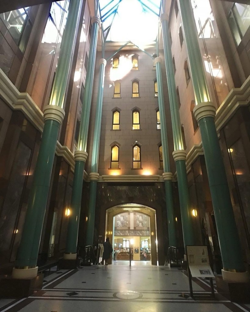 The surprisingly atmospheric entry to the offices above the ex stock exchange in Collins Street (part of the Gothic Bank) created by @more_kta. I say surprising@because it’s not what you’d expect for an office entry, though perhaps more used to get to @reine.larue. This replaced a 1992 entry created by @lovellchen that was a partial recreation of the original 1890 central entry to the Stock Exchange, in the entry created to one side when the banking chamber was expanded in 1923. In 93 they took the lifts out, and now lifts have gone back, helping create a level entry, so it’s quite narrow again. I quite like it.