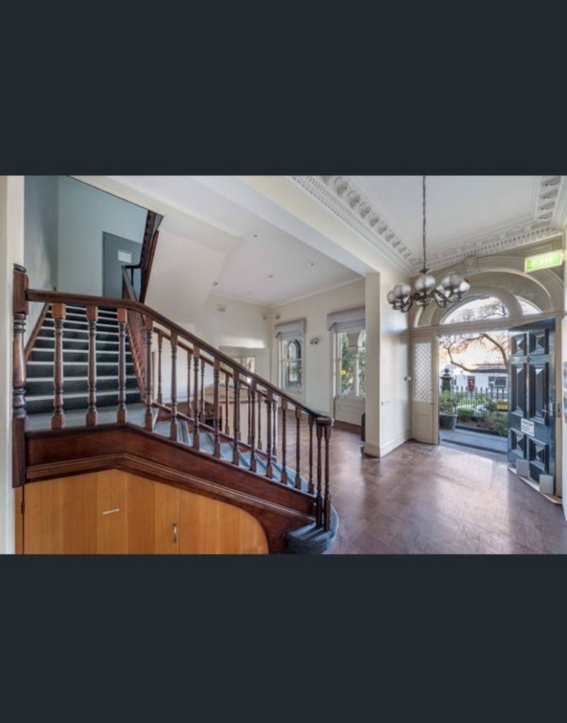 This rather grand house on the corner of Simpson and George Street East Melbourne was built in 1878, for timber merchant David Blair. It has a spacious two level arcaded verandah, looking rather Italian. It had hand painted ceilings and tiled floors, but from 1900 it was put to use as Mena private hospital, with many alterations and additions over the next century, until all the interiors were lost, and an intrusive block added on the corner, until it was sold in June 2022. It’s for sale again now with a permit for restoration, removing the corner bit, and creating two more houses on the site.