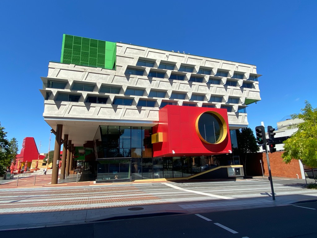 The building itself is usual zippy @lyonsarchitecture style, though the zippiness is from the shape of the windows and the (very effective) sun shades than the shape itself. I like it, though the new library in there isn’t very well signposted. There’s some very over engineered extra sunshade things.
