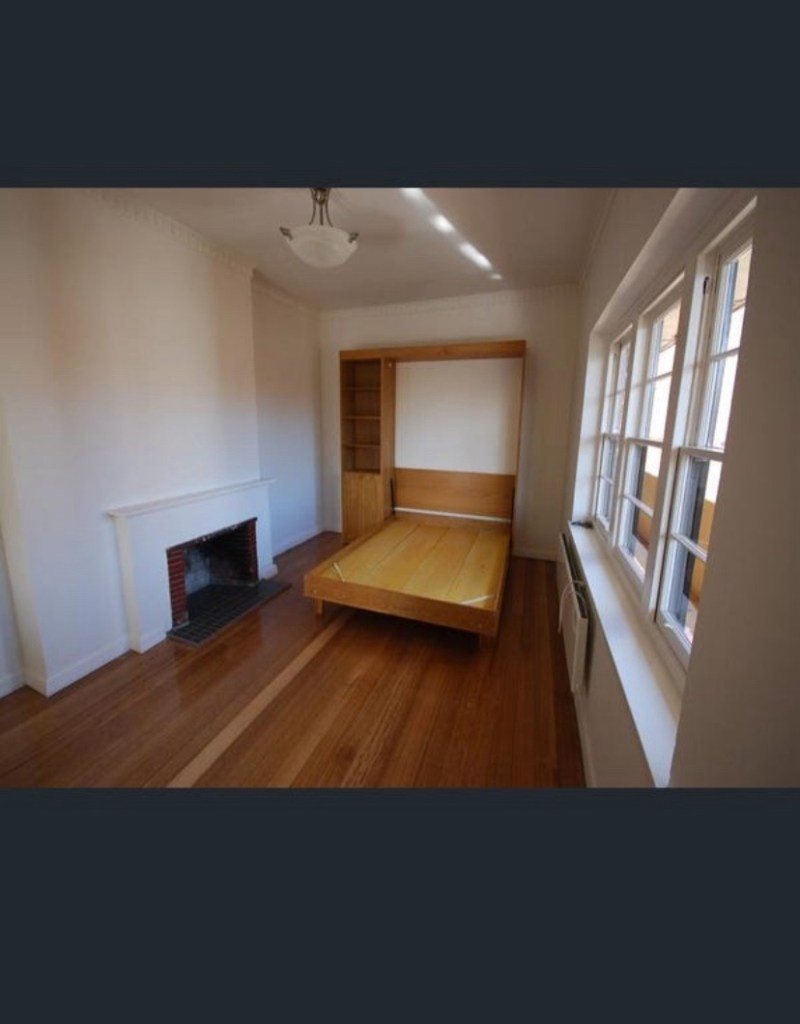 Very striking and curious flats in Hotham Street, East Melbourne, built 1941, yet more by IG Anderson. The long thin part is studios, which have actual fold-down beds ! But I don’t know if they’re original; the place seems to still be a single owner, so just some blurry rental photos. There’s a second block of one beds set right back, possibly this was intentional, possibly it was built behind the Victorian house once there, which was set forward, then demolished after ? These were all no doubt part of the mini boom in 1940, when city workforces expanded, especially women, and before Japan joined the war. There also seem to be more modern units at the rear.