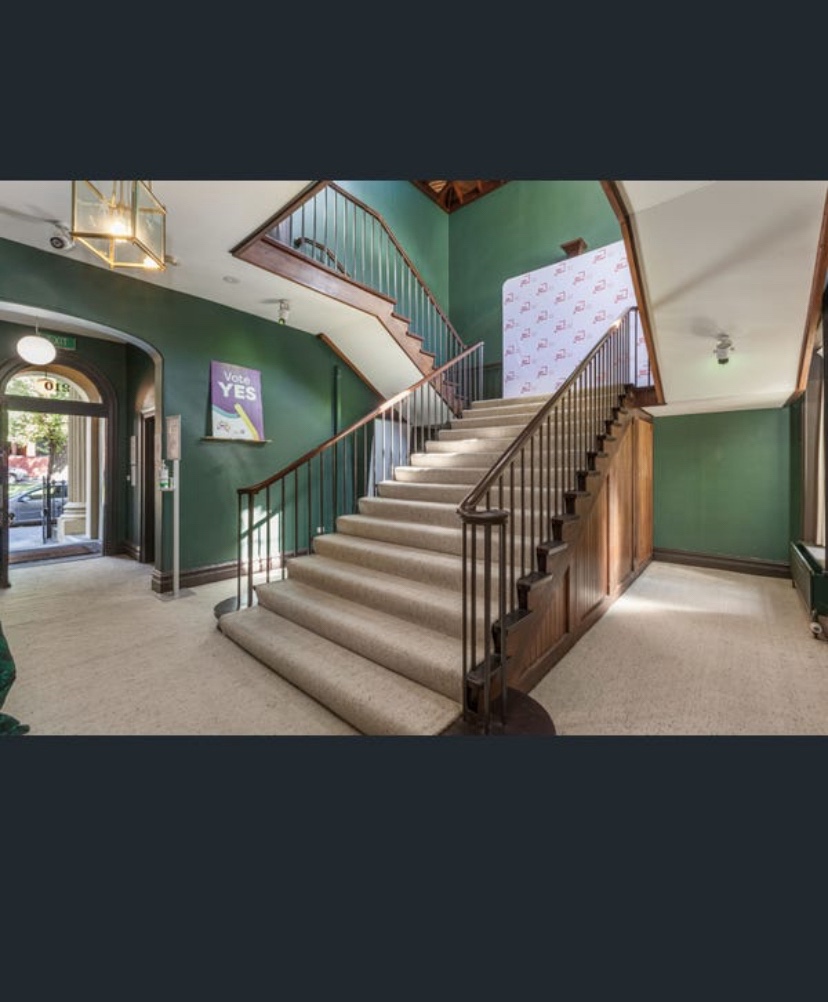 The works in 1979-81 involved pretty much gutting the interior of the two southern terraces to make large spaces (pics 5,6), so any new owner could do what they liked inside. The northern one seems mostly intact with original stair and fireplace (pics 7,8). Interiors from real estate ad, before and after restoration from @nationaltrustvic 1982 annual report via Graeme Butler.