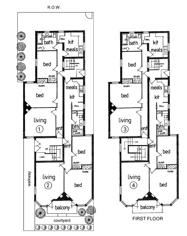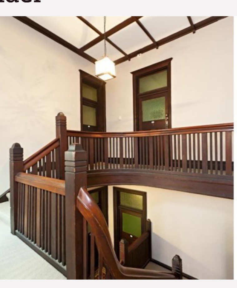 Some interesting early flats in Vale Street, Jolimont East, built in 1914. Sort of castley, with those octagonal turret bits, but otherwise Arts & Crafts /Edwardian, an uncertain style for a new way of living/investing in Melbourne at the time. Originally 4 flats, with a nice stair, and two squeezy corridors, and two flats with hardly any natural light. Sold in 2010, (pics 3-5) and since then converted into two much bigger flats, compete with lift, and completely characterless inside. The top one comes with a roof deck and a happy couple (pics 6-8). I assume/hope the stair and the nice entry doors are still there, but the fireplaces are gone.