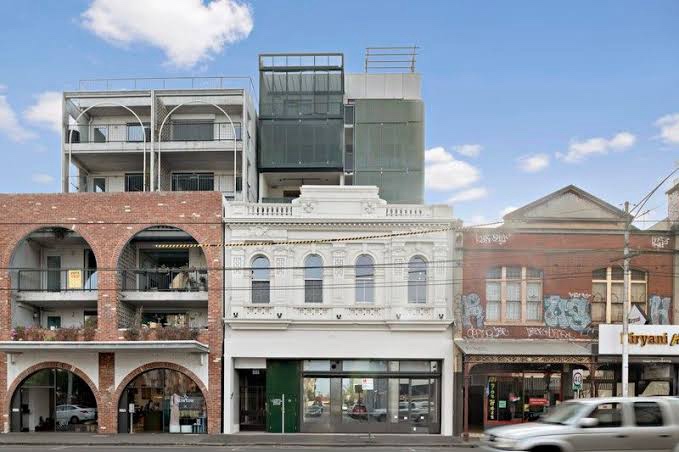Rather marvellous High Victorian facade on #SydneyRoadBrunswick, great fat #pilasters, sadly defaced with graffiti, and equally sadly due to be #facaded for apartments. 2024 : in 2020 a development by @sixdegreesarchitects was announced, finished mid last year, pic 2. Not complete facading, they kept or rebuilt a part of the roof over the first floor front units (pics 4,5). Got all the good stuff we expect from them, most units seem to look east or west either lots of light, bedrooms face a big light court, with tree, and some windows feature their signature coloured lead light. Top unit as in pics 7-10 looks speccy ! Next door is the similar nightingale 3.0 by @austinmaynardarchitects. All pics except the first are real estate photos.