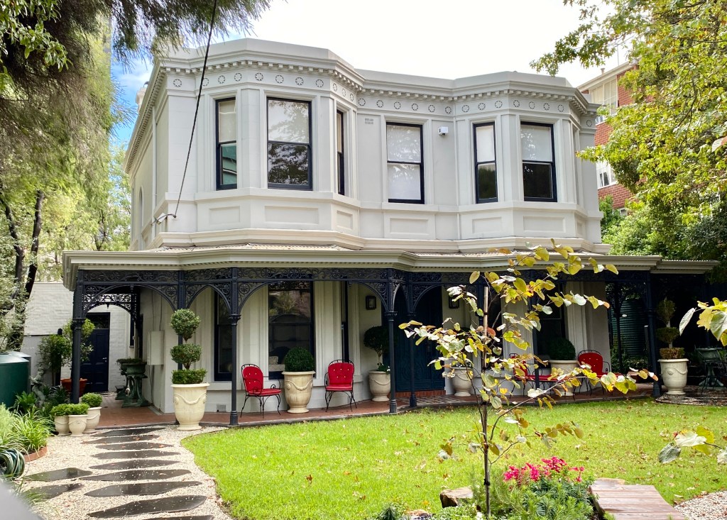 Delightful villa at 17 Powlett Street, East Melbourne; used to be mostly hidden behind plants, now you can admire the sweeping lawn and the delicate detailing. It’s an 1869 rebuild of an earlier house, and thought to be designed by prolific architects Crouch & Wilson. Last pic is @cityofmelbourne photo from 2001, showing that the verandah has been restored since then. It’s sold twice recently, in 2021, and late last year.
