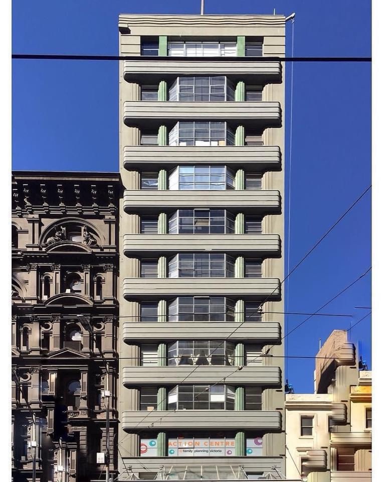Apparently yesterday was World Art Deco Day, so here’s a selection of Melbourne examples, all from 1930-1941 ish, arnt they great ? And all mostly intact, not just facades. I’ve stuck to big city buildings, but I could have done just flats or details or just one architect, so many to choose from. There’s various sub-styles that have different definitions, but I just put them altogether since they overlap a bit, though a popular theme here at least is vertical piers or ribbing, sometimes called ‘Commercial Gothic’. (One of them is in Geelong.)