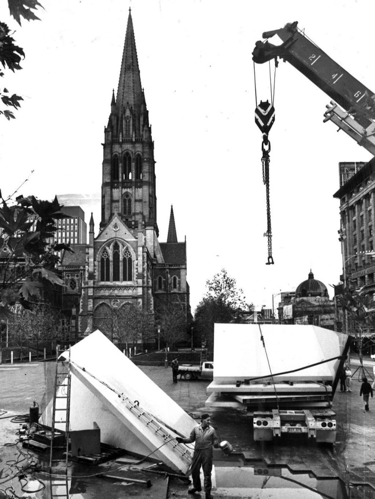 So Vault aka the Yellow Peril has been recommended for the Victorian Heritage Register. The statement of significance notes that it is an accomplished and pivotal work of public art, by sculptor Ron Robertson Swann, especially notable for its colour and composition, and for its history as a controversial and well-known example of public art. It’s hard to see now why there was such a fuss when it was unveiled as part of the old City Square in May 1980, but the city council voted to remove it only three months later, creating a media storm, and in July 1981 was moved out of the way to Batman Park. Then when ACCA was being built, it was relocated again in 2002 and now sits in a large gravelled area next to it. I don’t love it or hate it but I like its boldness and wouldn’t mind if it went back to the new City Square (not that there’s much room with the new Metro entrance). The listing is part of Heritage Victoria’s program to list more places built after 1970, though in this case it was already listed by the City of Melbourne. Photos from the Internet or the report.