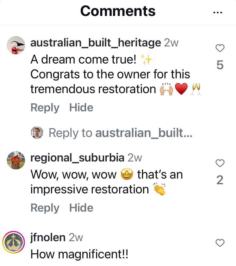 Modernisation of a terrace house at 96 Hotham Street in 1963 – and in 2021 it was completely restored ! The three, called Janet Terrace, were built in 1881, and designed by Charles Webb, who also did Tasma Terrace (last pic), and this has similar fully arched upper level cast iron, and a central circular parapet motif. I was alerted to this by a Melbourne history Facebook page, and the info and old photo are from the East Melbourne Historical Society. I feel like saying only in East Melbourne are owners so dedicated to faithful restorations, but I’m sure they happen elsewhere – though I can’t think of one quite like this, with not only the verandah but the parapet recreated, and they matched the colours of the other two, too.