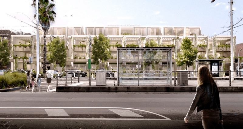 There’s this big old motel thing on Fitzroy Street St Kilda, perhaps 1960s, not much to look at, and about to be replaced by something also unremarkable – ok, maybe a bit better. But also bigger, with 5 levels and including the old nightclub, currently enlivened by some Council sponsored art by @ruskitchin. It’s designed by @woodsbagot, only 37 apartments, I presume big expensive ones. Meanwhile there’s 6 empty shops, and vacant carpark behind. But I guess if the greenery eventuates, it’ll be nice.