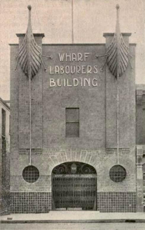 This rather mad thing once stood at 480 Flinders Street; it was a renovation of an old pub in 1915 to create a home for the wharfie’s union, and one of the very few things known to have designed by Robert Haddon (though as a ‘design consultant’ he had a hand in many other places). It was pretty radical yet whimsical, with little ornamentation, other than the pair of Rostra (prows of ancient ships), made of copper, and a wrought iron screen with a nautilus motif. In 1953, the Union modernised, and made it much more boring (pic 3, far right), and committed modernist Robin Boyd somewhat surprisingly wrote a piece condemning its loss, saying it was ‘a vigorous work by a sincere and dedicated architect’ – then woke up one day at his home in Camberwell to find one of the prows in his driveway ! (well that’s the story). The Union was famously left wing, and no wonder, it was a gruelling and insecure job, manhandling sacks, and often only hired for the day. Info from Susan Pate on ‘Melb and Victoria’ Facebook page, I think largely from Harriet Edquist’s Arts & Crafts book, photos from various FB posts, 2nd one Graeme Butler, don’t know original sources but I’m guessing Building Magazine for the facade shots.