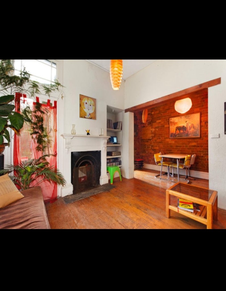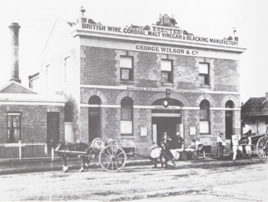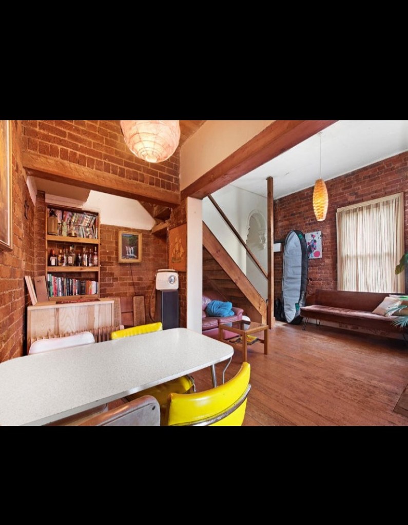 What looks like a double terrace on the right was actually built as a cordial factory in 1860 (B&W pic) then at some point the top floor and the entry arch were changed, though it stayed industrial until c1979, and since then it’s been two houses I think, with vaguely Victorian style interiors. Historic info and old pic from Fitzroy Research Melbourne blog.