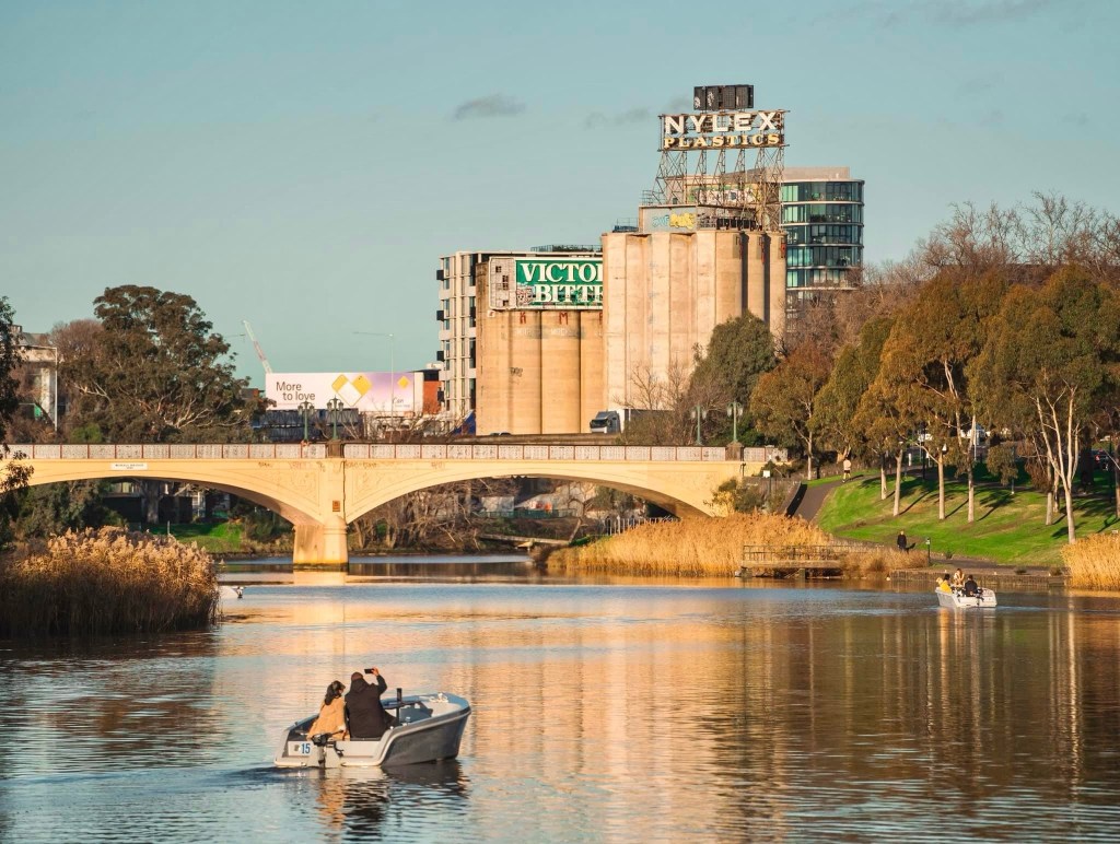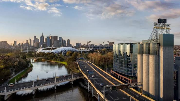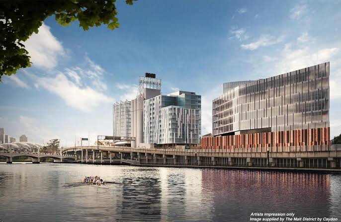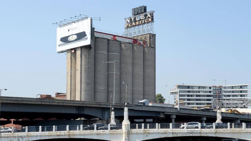 The c1960 Nylex Sign was in the Age today, noting that the developer Caydon went bust two years ago, and the Richmond Maltings site remains part vacant, part demolished – and now I look closer Im a bit aghast again at the development permitted by Heritage Victoria in 2018. At first they wanted to demolish the 1950s silos completely, plonking the sign back on top of some glassy apartments, so the compromise was to demolish the west half of the silos to make room for a quite large curvy apartment building, leaving the other half alone except for additional floors so the sign would be higher up. So a lot of change! They did the demolition in 2022, and meanwhile the sign hasn’t worked for ages (or has it?) and so memories are fading, and it’s already much less of an icon, and if something like this goes ahead, even less so; coming down Punt Road at night you’d be mainly seeing apartment windows with some old silos sandwiched in the middle with a sign on top. I note they didn’t do a view of it from there, or from the east. First pic Humans in Melb FB page, last pic Maggie’s Diaz 1960 @library_vic, other images real estate sites and from the plans. Not sure where pic 2 comes from.
