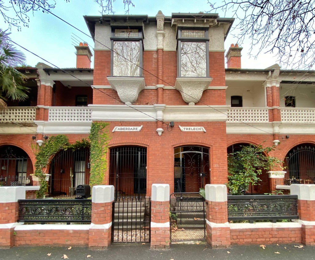 ‘Welsh Terrace’ on Mary Street, West St Kilda, a very impressive and unusual Edwardian era landmark. Terraces were still built up to WW1 but not super common, and not many as grand as this row of 6, with projecting paired rooms/porches, and broad arched verandahs.