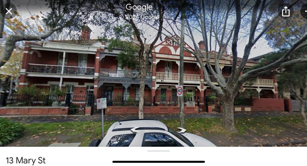 In searching Trove for ‘terraces Mary Street’ I found the ‘sensational’ case in 1899 of Mrs Fraser who shot her husband in the head ! (he survived). The news at first said she was deranged, but then when it was revealed he’d left her and was seeing other women; her defence was that she just happened to have the pistol in her pocket, and while arguing in street just outside the George Hotel, she pulled out her handkerchief, and the gun went off somehow …. and the jury found her not guilty, declaring ‘it was an accident’, to the surprise of the judge, and the cheers of the women in court. She had been building a terrace in Mary Street, thought might be Welsh Terrace, but there’s another less interesting Edwardian one only a block away on Park Street, so it’s probably that one.