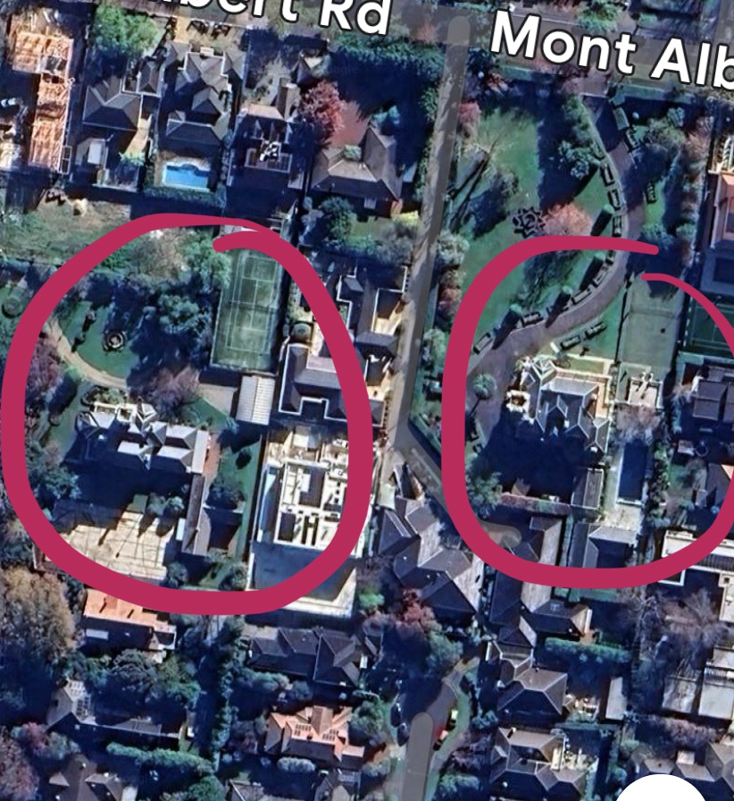 Amongst all the Federation villas in Camberwell are a few 1880s mansions that once had huge grounds, and two of them almost match and were right next door to each other off Mont Albert Road ! Parlington (originally Veralum, pics 1,2,3) was built in 1888 for Mr Macintosh, and designed by #JamesGall who did a lot of the most elaborate #landboom era mansions – including Frognall (pics 4,5), built for Mr Hicks, local timber merchant, which was right next door about 200m away (see plan, Parlington on the left). It’s got the same staged section tower with the same top floor, the same arcaded porches, the same polygonal bays on each main face, but it’s a bit more ornate and the tower is taller; Mr Hicks must have said ‘I want the same but bigger’. They could’ve had shouted conversations from their towers. Both promptly lost their mansions when the bubble burst in the early 1890s. You can see Frognall from Mount Albert Road, still in large grounds, owned by the Air Force for ages; I have childhood memories of driving past but somehow I didn’t know about Parlington till I became an architectural historian, it’s much more visible off Parlington Street, which bends around it, and still has fairly large grounds. Only pics 2,3 are mine.