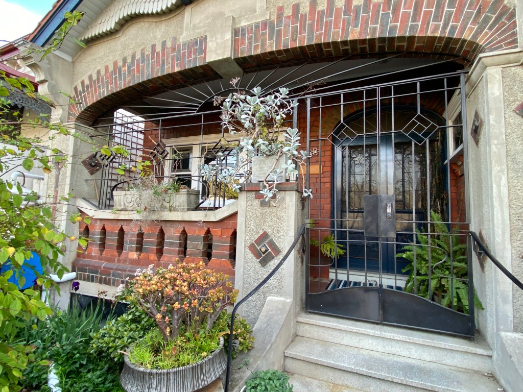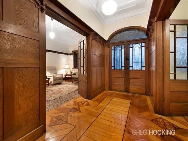 More on that delightful house in Nelson Road, South Melbourne – the current owners @brigidniall tells me that it was built by local builder Allan Sommers as his family home, so he put everything into it, and it took him 5 years, starting in 1928. Great brickwork, fence included, and shingles that end in a curve, two gables and projecting windows. It possibly took so long because the whole thing is perched up on a concrete slab, creating a large basement workshop – found sale pics from 2014, showing the inside is just as good, lots of great woodwork including elaborate parquetry floors. Fantastic. And quite a modest size too.