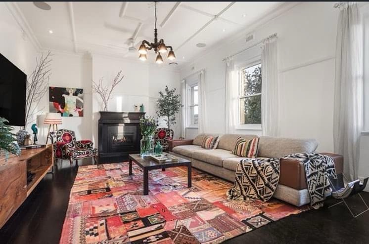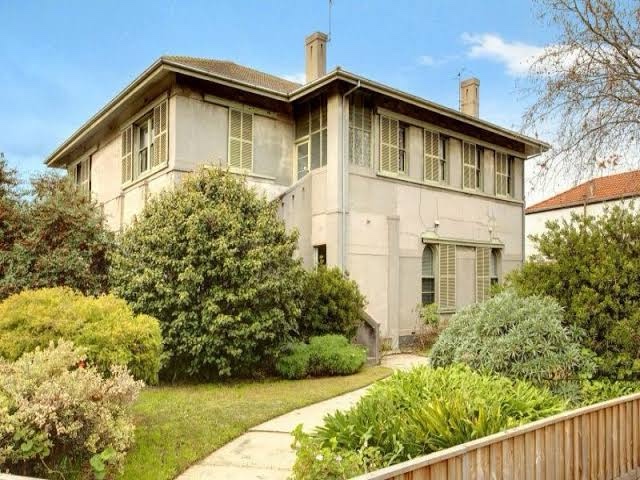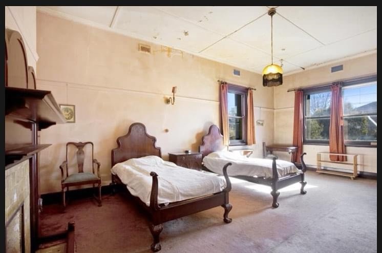 Nice half hidden early 20s house-style flats corner of Robe and Acland – it looks like a house because it’s actually a transformation of a Victorian home, adding a floor, turning it into three spacious flats – a spacious 2bed and a 1bed downstairs and a house sized 3/4bed upstairs via external stairs on the corner). I wonder why they didn’t just start again like so many others ? Or stop at 3, when they could have fit in 10? The answer is probably someone wanted a nice place to live in st kilda, didn’t need a house, so transformed this for themselves upstairs, and flats to let downstairs. They may even have inherited the house. Ps great shutters possibly still in the original #eaudenil colour, a v popular interwar shade. Found real estate photos from 2012, and from 2019 (after the first one which is 2012, they go 2012, 2019). A response in 2020 when I said ‘old lady furniture’ said it was indeed an elderly relative. Owner @thefengshuigirl in 2020 said she was working on putting a stair inside, and making it a multi-generational home.