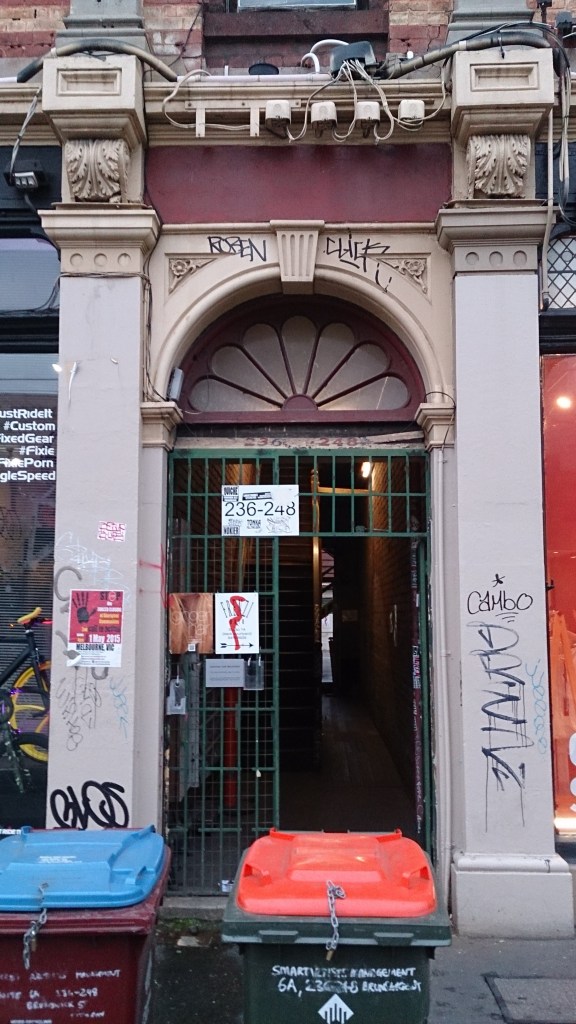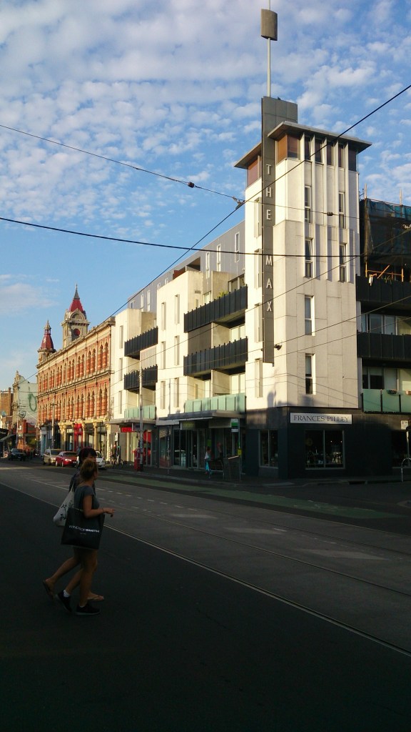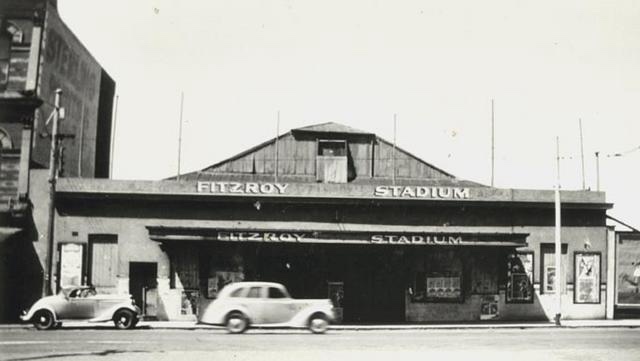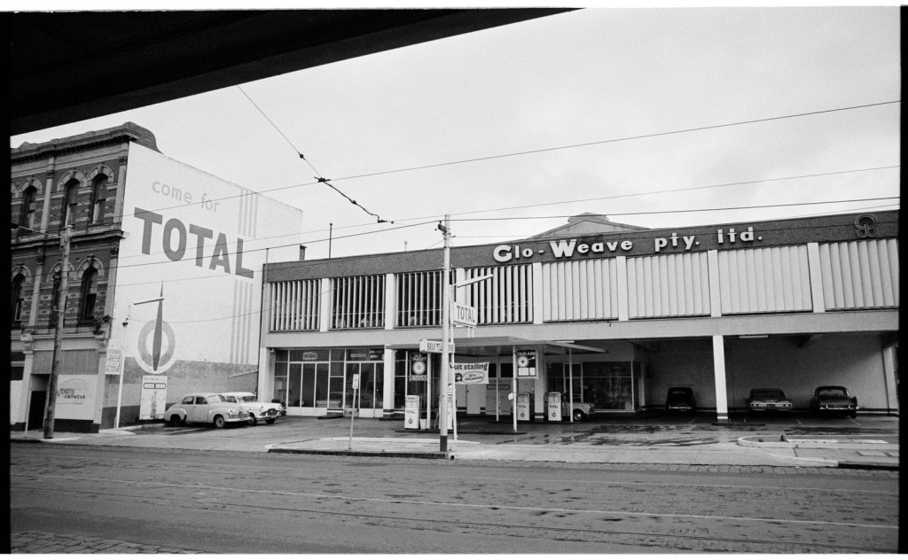 Update : much more charming! Though it is surprisingly big, with three separate blocks and courtyards, and possibly no lift, with the entry floor is above carparking up some stairs. Before this us was the Glo-Weave factory, which I vaguely remember, and which had a petrol station built in. The @library_vic photo looks mid 60s. Before that it was a big shed/venue, which had various uses, and started out as the Fitzroy Stadium (for boxing) from 1930-39 (I think), image from Fitzroy Library. It was in turn probably made out of an early cinema, the Liberty, which seems to have started in 1919. And before that … there was an ‘exhibition hall’ 1890-2, seems a short lived venture…and before that it was the Exhibition Skating Rink opened in 1887. Phew.