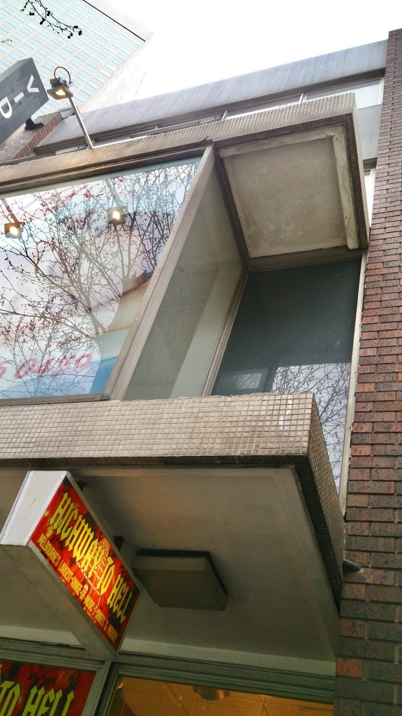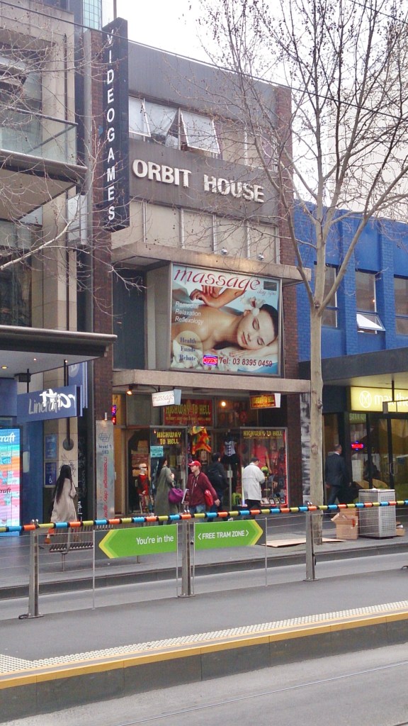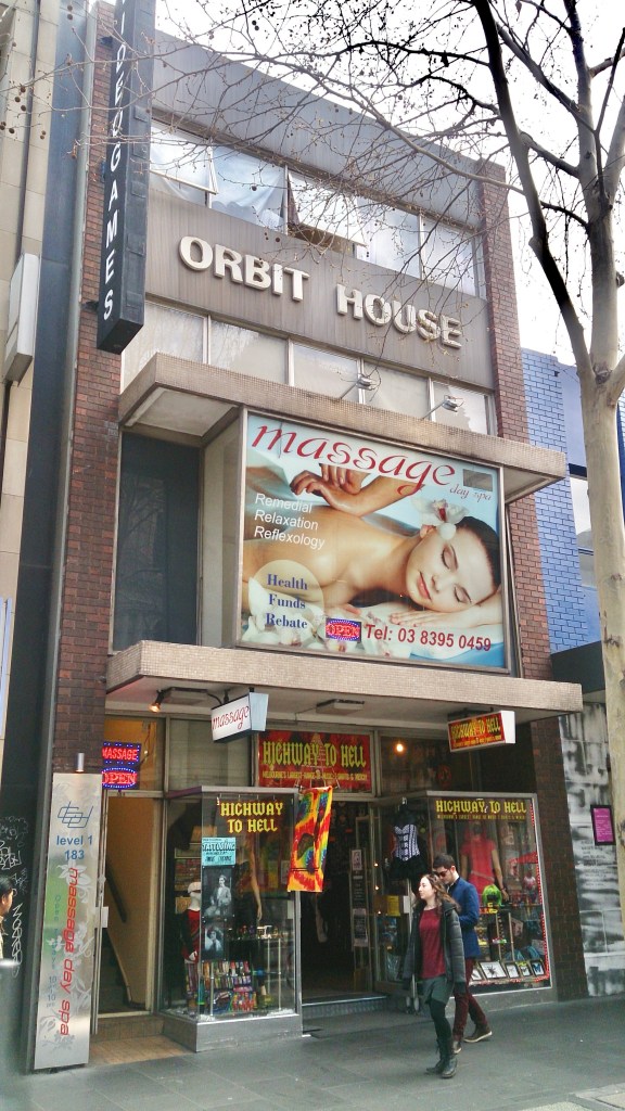 Ignore the big ad and cluttered shop windows and you can see an interesting little shop/offices from c1971, half behind a tree in Elizabeth Street opposite the GPO. Lots of detail when you stop to look, like projecting first floor display window, which leans out, with inset corners and tiled edges to the conc, and the recessed/projecting shopfront. I seem to recall this being a #travelagency so the name #OrbitHouse makes sense, oh, just found an ad for them from 1973, so there you go. I guess they had the public at ground level and office space upstairs ? Or maybe they just occupied the upper floors. I’m told it was also the home of the little bookroom from 1979-2005. Update 2024: the shopfront was destroyed in early 2019, so the Hoddle Grid heritage review in 2020 said it was too altered, so it wasn’t listed.