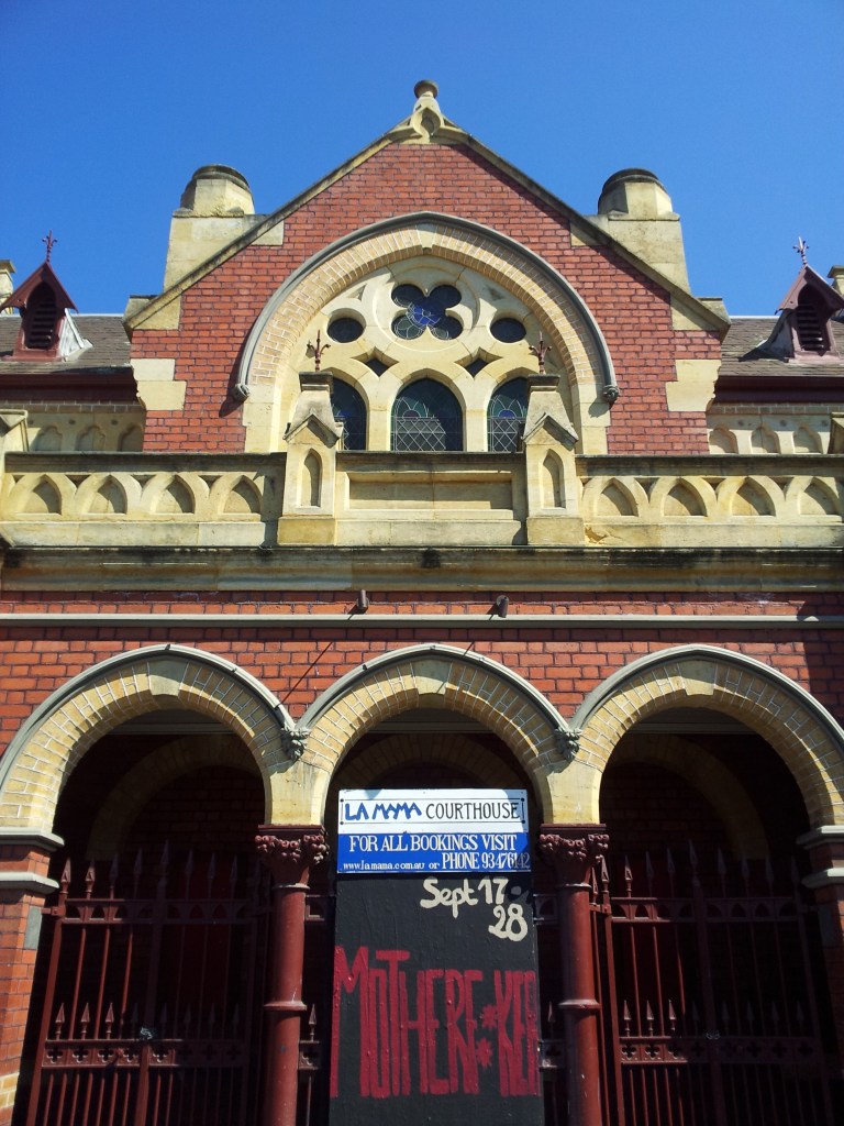 Repost 2014: Carlton Courthouse #1887 designed by #GBHAustin of the #publicworksdepartment, a lovely stylish bit of #gothicrevival. Sort of in prominent location on #drummondstreet off Elgin rather than on a main street, but it was opposite the police station, also still there. Now one of the two @lamamatheatre venues, the big courtroom itself a nice tall box, with some gothic arched doors, but otherwise simple inside.