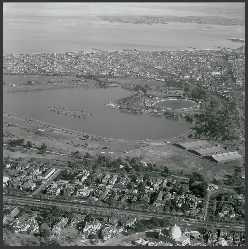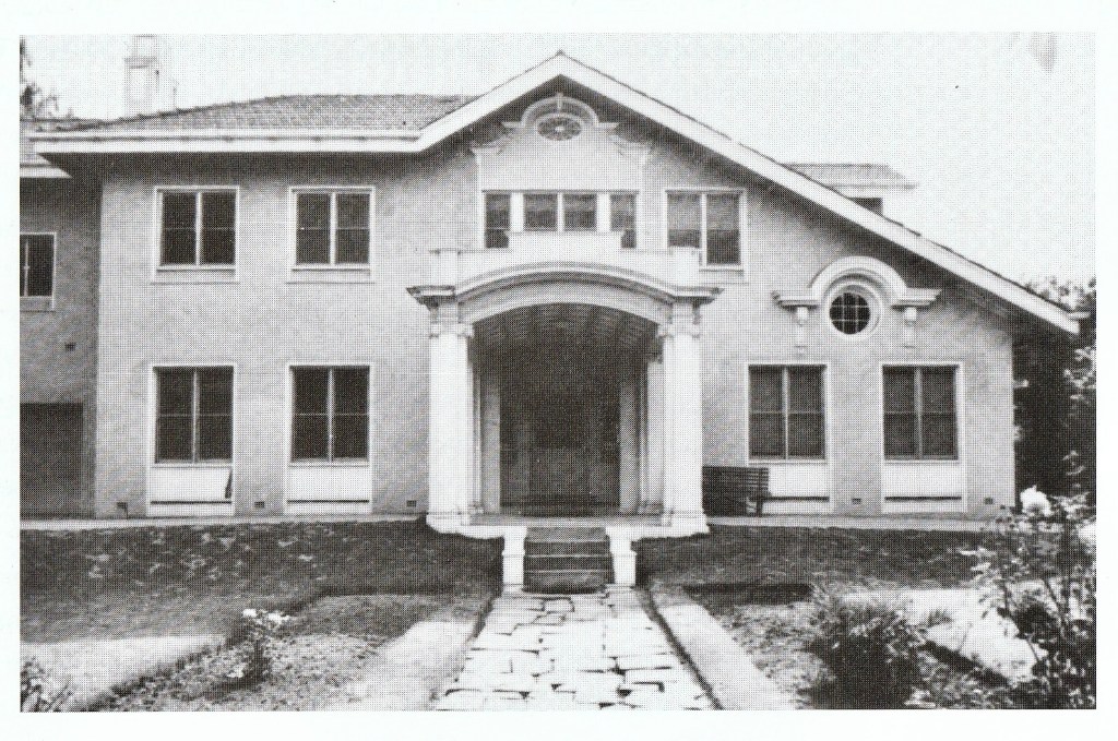 This rather amusing house once stood at 446 St Kilda Road; built c1925, it was designed by Harold Desbrowe Annear in the period when he played around with various Classical and Art & Crafts motifs. As Harriet Edquist notes in her 2004 book on him, this one ‘pushed asymmetry to the limit’, fusing spare plain forms with a Voysey roofline, decorated with two ‘oiel de bouf’ windows and a thrusting ionic portico. The first pic is from her book, the second rather surprisingly is from Identifying Australian Architecture, published in 1989, even though it had already been demolished. These are the only photos of it, but I’ve just found another, if you squint at a 1953 aerial. It’s a great shot, showing the street just before the houses and flats began to be replaced by office blocks. You can see that it was a mix of Victorian and later mansions, Victorian and later biggish houses like this one, and Interwar flats, so this is the gracious street some people still remember. From what I can work out, this house was called Hampton Lodge, and was built for Valleck S Meyers, perhaps by his father FS Meyers, who was managing director of London Stores in the city, and who lived next door to the right, in a big late Edwardian, called Deva (he bought the site in 1912). The house was built because Valleck had just started a family, having married Melba (Babe) Thomas in 1923 at her family home, also on St Kilda Road ! That was Koonwarra, a house built in 1913 that lasted till 1984, last pic. Valleck and Babe lived in Hampton Lodge until at least 1949, long enough to have children and see at least one married. I don’t usually do social history, but finding all that out took about 5 minutes on Trove, which also gave me a pic of the happy couple. And also informed me that Mrs Meyers Snr had valuable jewels stolen from the house in 1925, later recovered.