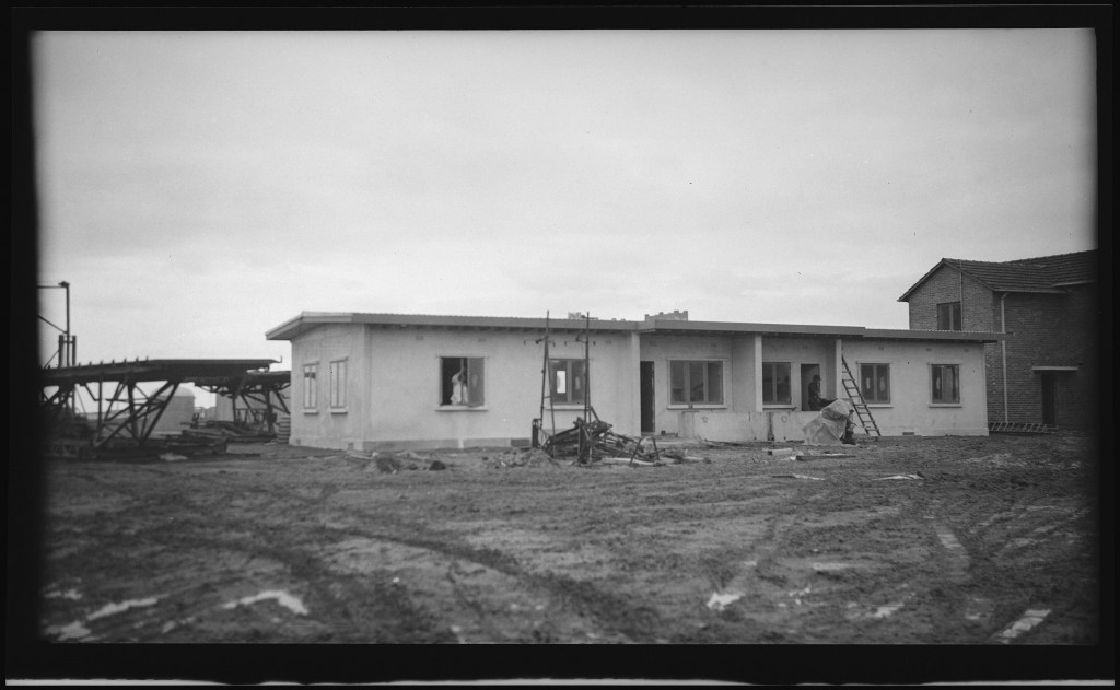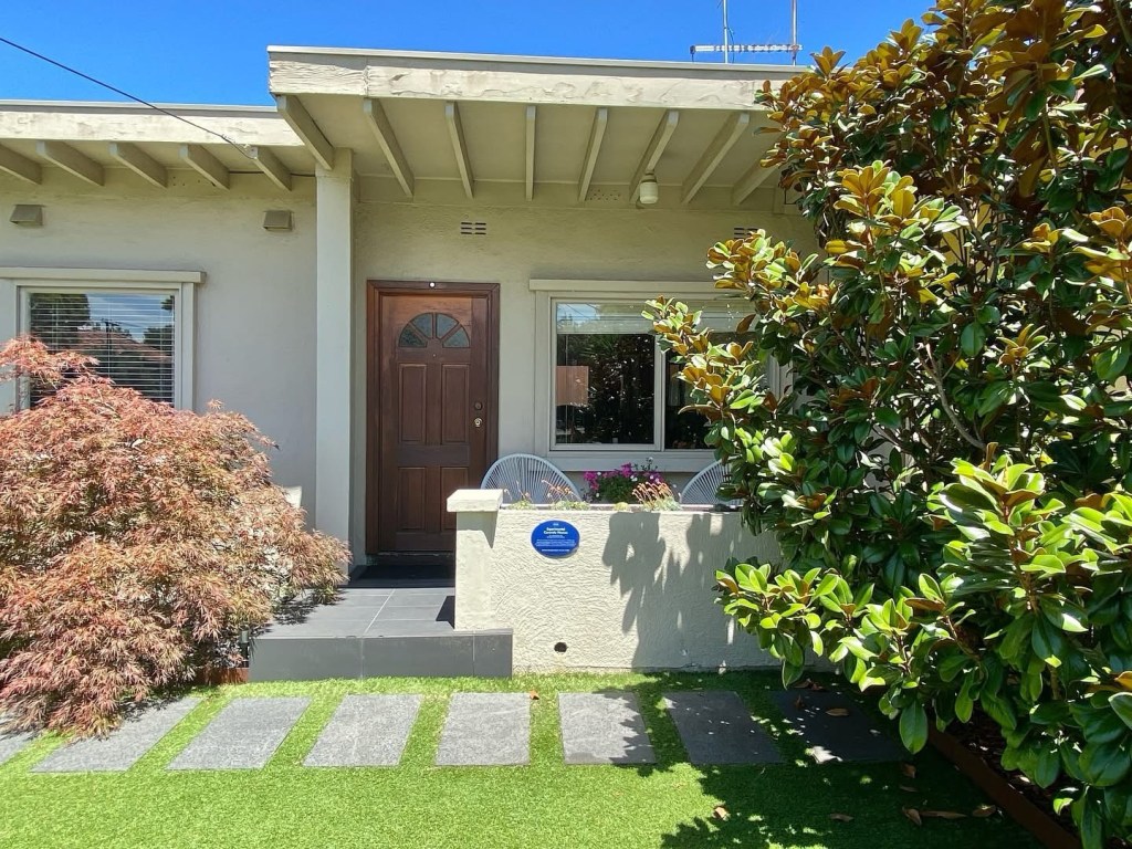 Looks like a bit of mid century modern, but actually it’s 1939! And made of concrete. It’s a pair of ‘experimental concrete houses’ built by the new Housing Commission of Victoria in the Fisherman’s Bend estate in Howe Parade, Port Melbourne, using the Fowler method of precast wall sections (poured insitu lying flat then tilted up). Even though they’re called experimental, they built 25 pairs, but these two are the only ones with such nearly flat roofs, and the only ones on the Victorian Heritage Register. The citation says they were a precursor to the precast walkups and tower blocks of the 60s, but also I think more concrete houses in the 50s. I read ages ago about how the thermal performance of these was poor, with condensation inside in winter, and so some have a new brick exterior, while these two possibly have extra internal insulation. Pics 5, 6 from heritage vic, 1943 and c1999. I saw another couple that looked original, last 2 pics.