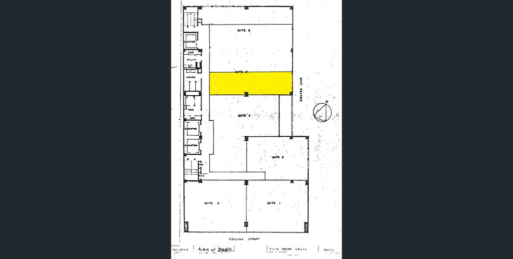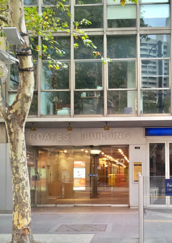 Completed in 1959, it made a stir as only the second ‘glass house’ after 100 Collins Street just down the road, completed 1955, both designed by JA La Gerche, and pretty much his only notable work. Built and owned by a cooperative of which La Gerche himself was a member, it was intended as medical suites, so had some ‘mechanical ventilation’ and opening windows and slab heating coils. The 1956 design had a different first floor, but not built that way, you just look straight up at desks etc.