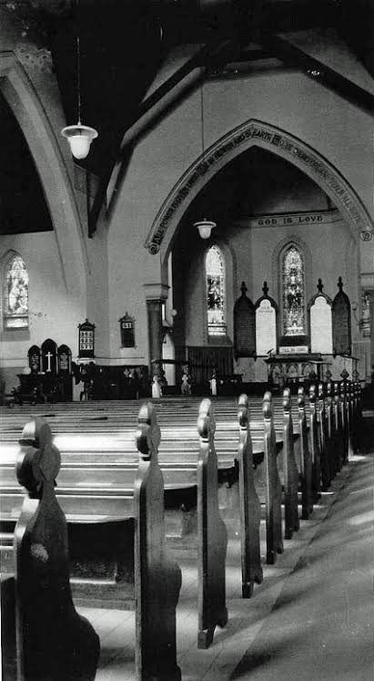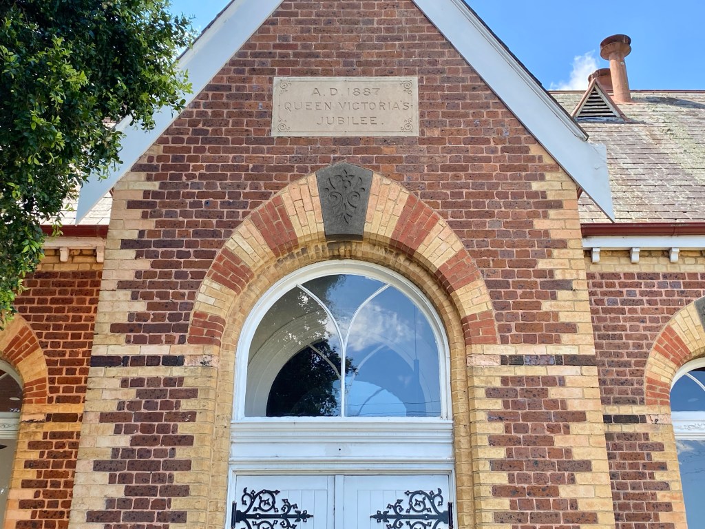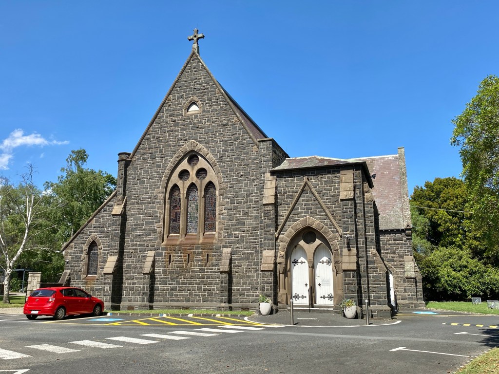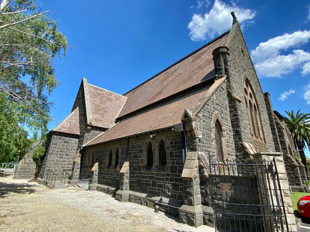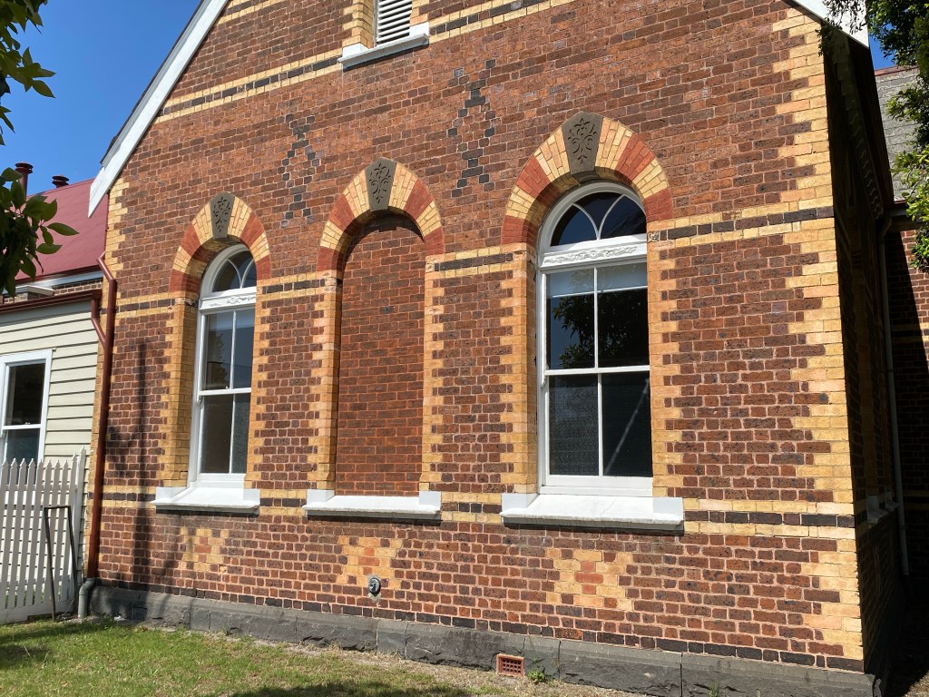 Great polychrome church hall attached to St Mary’s Caulfield, which is big but rather uninteresting. It was designed by Reed & Barnes and built 1870-71, would have been better if the spire had been built. Nice spacious grounds. Interior looks spacious.