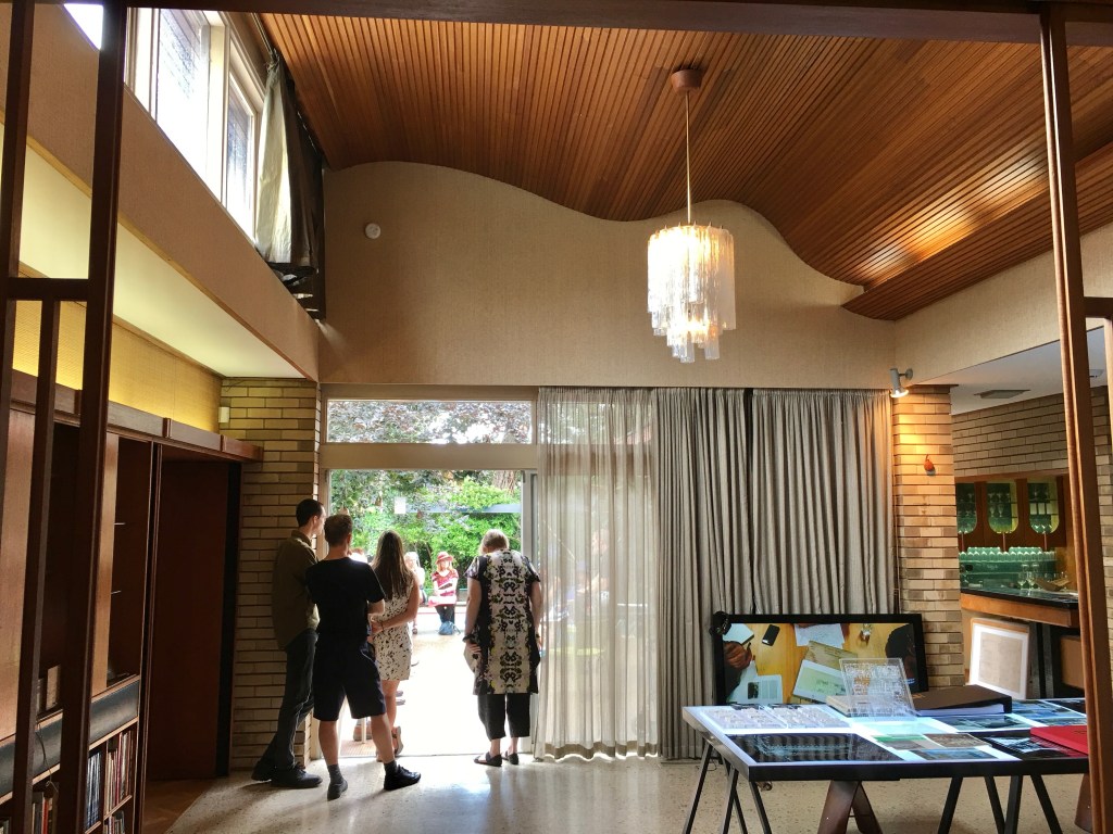 The fabulous Fooks House in Howitt Road, North Caulfield. Open as part of a special exhibition last weekend. Built by Jewish Czech/ Austrian emigre architect Ernest Fooks as his own home in 1966, which he shared with wife Noemi; she was there until 2012 passing away at 102, and kept everything perfectly intact. Modernist but richly detailed, with a heavy dose of Japanese influences, loads of built in screens and furniture, a great wavy timber ceiling/skylight (shades of Aalto), spaces flow from one to the other with every inch of the block designed, from the pebbled front path to the pergola behind the pool. Love the bed. And the bar. I didn’t take nearly enough photos, the kitchen was also intact. Fooks was well known in his day, but like most of the European refugee architects who tended to design in a more complex decorative mode, were passed over in architectural histories until rediscovered in the 2000s. This house is one of the few from that group on the #VictoriaHeritageRegister (I helped get it there when at the @nationaltrustvic in 2009. I recall it was friends of Noemi’s who were really worried for it, one of whom bought it at the auction at a price well over the average for the area – whew !).