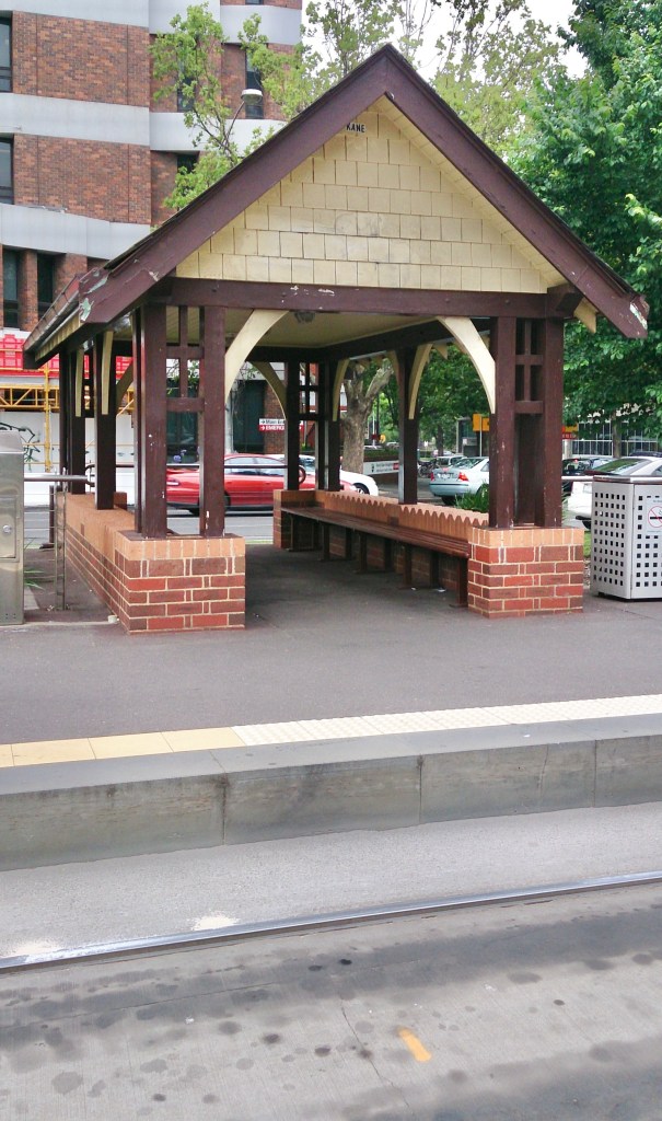The old tram shelter at St Vincent Plaza (the interchange at the bottom of Brunswick Street) actually has a bit of a history – here’s what I said in 2014 when I took the pics: This cute #rusticstyle #tramshelter was built in 1933, designed by tramways board architect F G Monsborough, and it was originally on the other side (see b&w pic 1969). While I was at the @nationaltrustvic I helped with the restoration of all the tram shelters in 1996, and suggested they should all be ‘tramways’ cream & green (the colours used on the W Class trams), even though paint scrapes showed this one was originally cream & brown. Then a few years later in 2002 the stop was rebuilt, with 3 platforms, and the only room for the shelter was the other side (they nearly didn’t keep it at all). In the process of moving it some bricks were broken, the replacements didn’t match, so they had to start again with all new bricks. And the conservation architects @lovellchen decided to go for the original cream & brown after all.