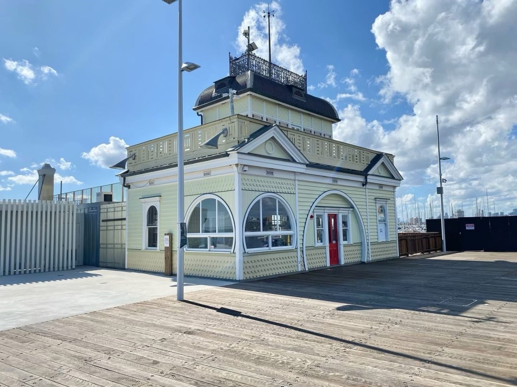 The heritage-style kiosk on the St Kilda foreshore has sold ice creams for as long as I can remember, but suddenly it’s empty. Pics from two days ago, vs January. I’ve always sort of liked its jaunty character – there’s a fun curvy pointy roof, verandah all round, and the weatherboards are even done in a Victorian diagonal pattern. It’s possibly late 1980s. Not sure about the paint job. Always wondered if it wouldn’t have been better closer to the water, but must always have struggled in winter – and in fact it was @claw_and_tail oyster bar from the end of 2022, and they didn’t renew the lease due to family changes, so I guess it’s up for grabs ? I think I like this more than the other one, also empty while the foreshore part of the pier is rebuilt.