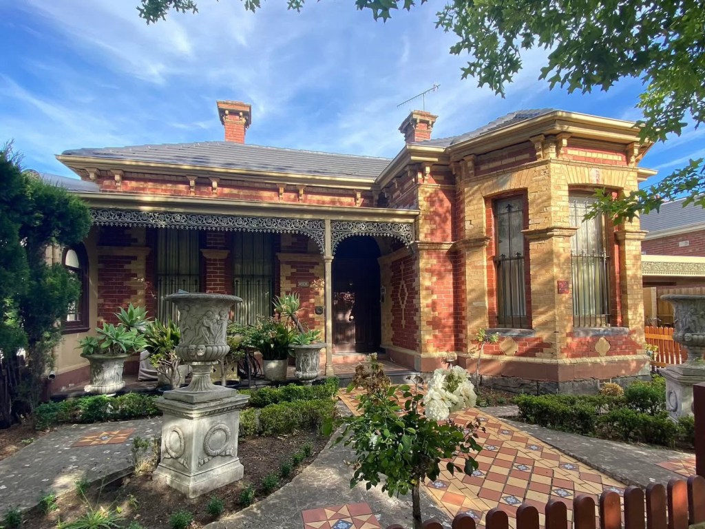 Wandering down Pasley Street on the eastern side of Fawkner Park, surprised it felt like Kew or Hawthorn with larger Victorian houses on largish blocks. There’s even a mini-mansion with a tower; it was built on 1898 by owner/builder James Baxter. Then there’s three houses in a row all in different styles that look 1880s, but all built in 1896 by builder James McLean: a two-tone brick one, then one with Dutch gables looking a bit Edwardian, and then just a nice house with rather unusual cast iron, looks a bit like Japanese clouds.