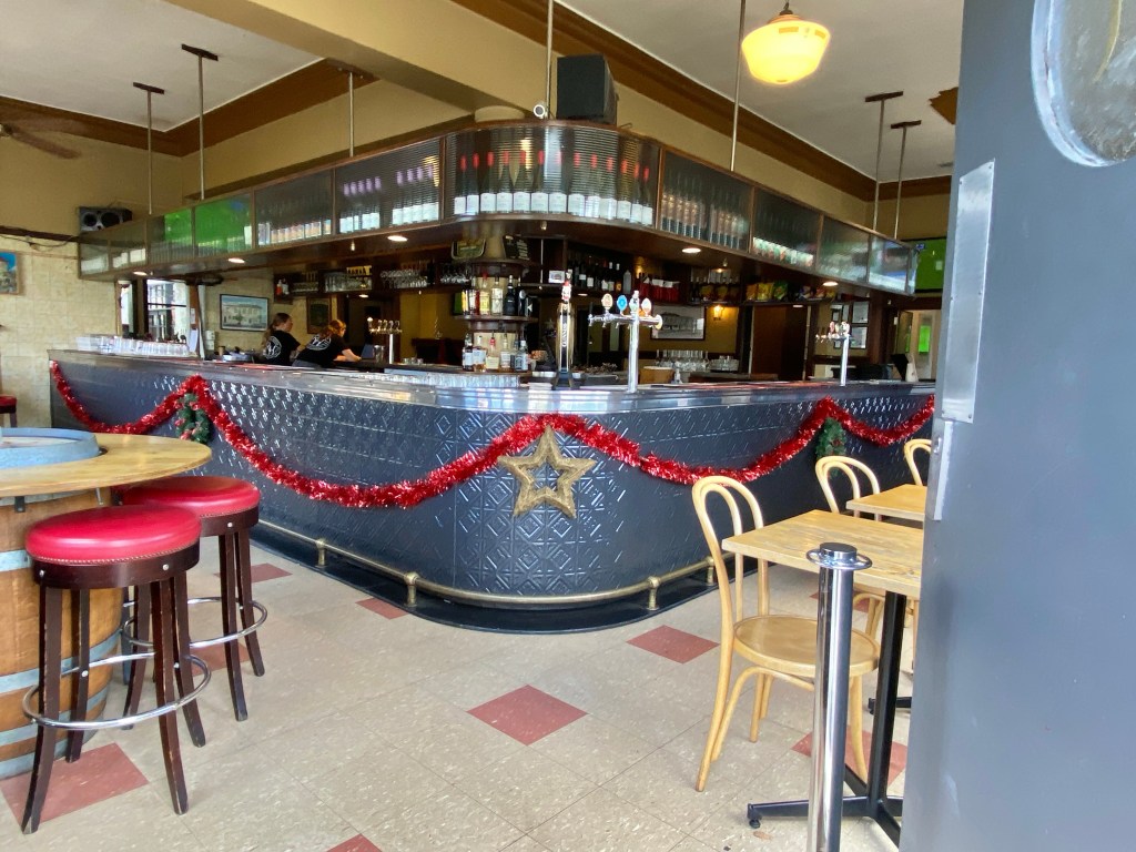 One of the many things I get excited about is early surviving bars in pubs – out of the many hundreds of pubs in Victoria, almost all of which got a makeover in the 1920s or 30s, only a handful havnt been modernised again and again since the 60s. This is the Railway Hotel in Ferrars Street South Melbourne, and that curvy bar with bottle store above in reeded glass looks very 30s to me, though not the pressed metal front (should be tiles like in pic 4), so could be a retro design from the 80s ? (Update, a member of the family who ran it in the 80s says yes the bar was already there, so probably 1930s, just the pressed metal added). The floor is 50s or 60s Lino though, so just possibly the bar is 50s looking 30s. Anyway it’s very nice. The pub was first opened in 1856 as the Napoleon the Third (apparently), but not sure if it was rebuilt at a later date – the tuck pointed brickwork revealed over the door looks later to me. Pics 1, 4 from pub website, 2,3 mine, through the door, and outside mine also.