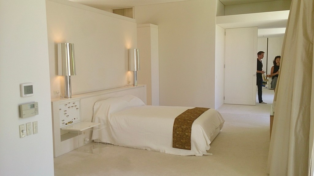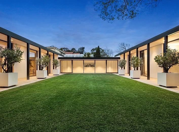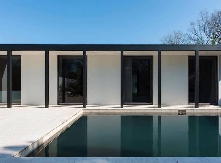 I am very pleased to report that the quite extraordinary 1972 Seccull House in North Rd Brighton by Guilford Bell has been added to the #victorianheritageregister. The owner opposed, it went to appeal, but they didn’t win so it’s listed now. Why would you buy such an amazing house if you weren’t planning to keep it as it is ? Guess scared of ‘restrictions’. I saw it when it was put up for sale in 2016, after being very thoroughly and expensively restored by the couple who bought it from the Seccull estate in 2013. They fixed and regrouted the travertine floor in particular, work done by @combconstruction and overseen by the Bell’s successor firm @bellfisherarchitects. Bell’s work is so refined, he was a minimalist modernist, mainly doing houses for an elite clientele. He loved white, windows as gaps in the walls, and he especially liked formal planning – often the whole room or wing was symmetrical, including the furniture. Which was also white, or chrome. I’m not sure I could live in this one, too white for me, but then, I saw it set up for sale in 2016 with no sign of life. I love the first image, from the sale promo by @goldeneyemedia, with period costumes- early 70s outfits were pretty colourful.