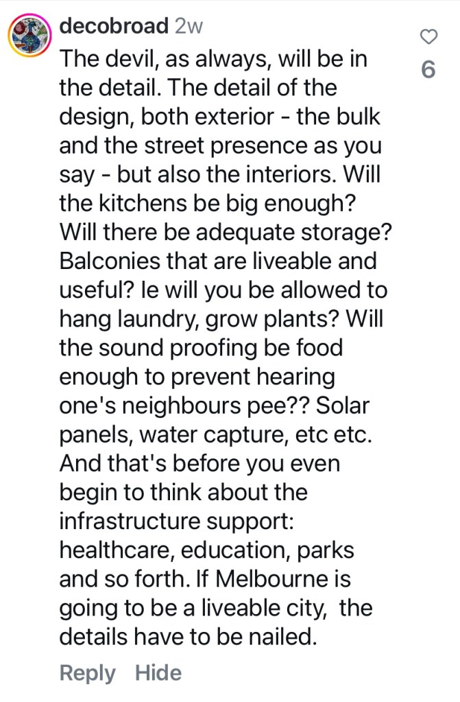 First photo is a large thing the Premier announced for a site on Hoddle street near Victoria Parade (too bulky really), towers in Fisherman’s Bend (fine, but why arnt there more already ?), then that bit of Footscray that’s gone way up (fine, but hope the amenity is ok), downtown Box Hill (a mess, but ok, in fact make them taller), then an apartment/ hotel thing Dandenong Road Oakleigh (more and bigger to come along there I’m sure). Personally I’m not fussed about actual height, it’s the bulk, and what the street feels like that matters. Many more thoughts, this post too long already.